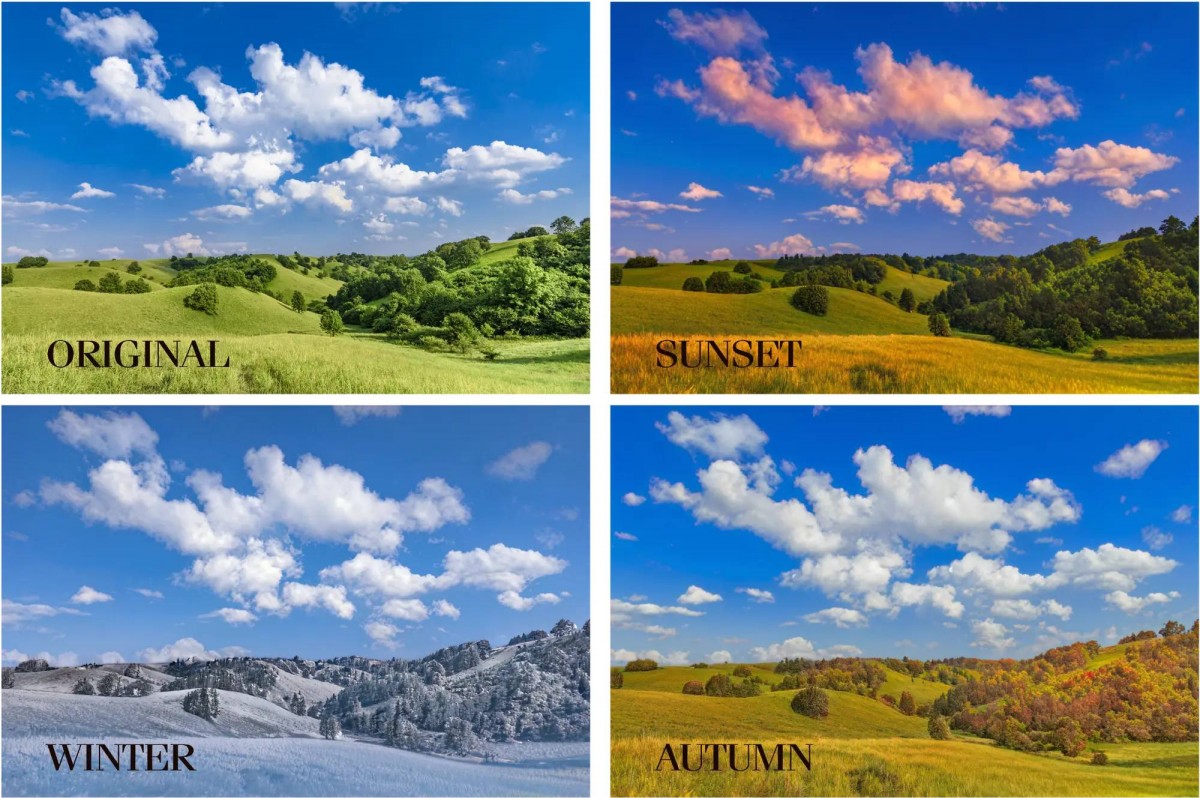 Pentru desktop avem noua funcție Smart Object Masking care folosește tehnologia Sensei AI pentru a crea o nouă mască și aplica ajustări locale unui obiect, iar pentru mai multe obiecte putem selecta Layer - Mask All Objects. De asemenea, tot în aplicația desktop avem funcția Landscape Mixer care poate genera un anotimp diferit pentru o fotografie landscape, după cum se poate vedea mai sus.