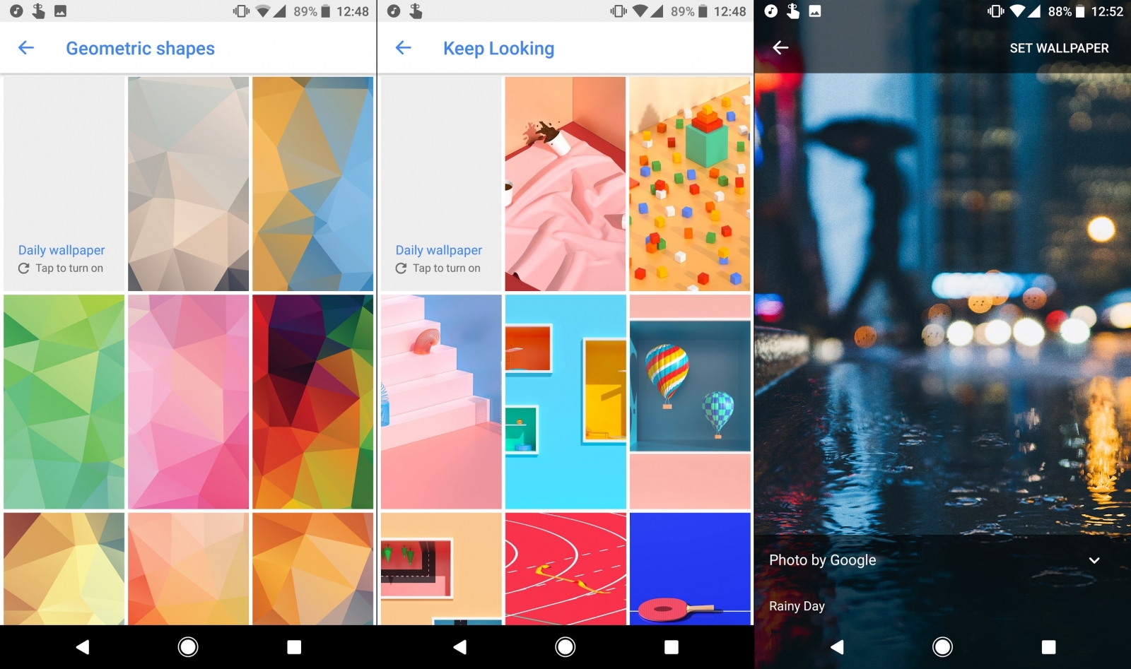 Din păcate cele mai interesante bunătăţi sunt păstrate pentru telefoanele Pixel deocamdată. Din când în când aplicaţia mai primeşte o colecţie nouă de wallpaper-uri, cam când se schimbă anotimpul să zicem. Începând cu această săptămână avem 3 categorii noi de fundaluri la care să apelăm. Prima este "Geometric Shapes", apoi avem "Underwater" şi "Keep Looking".