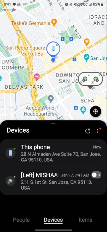 Practic aplicația conține opțiuni integrate deja în SmartThings Find, doar numele fiind schimbat. Există 3 tab-uri: People, Devices, Items. Din primul tab ne putem distribui locația, iar ea va putea fi vizualizată de ceilalți membri ai familiei noastre. Cel de-al doilea tab cuprinde device-urile înrolate în aplicație, iar cel de-al treilea tab e dedicat obiectelor ce au un Galaxy SmartTag atașat.