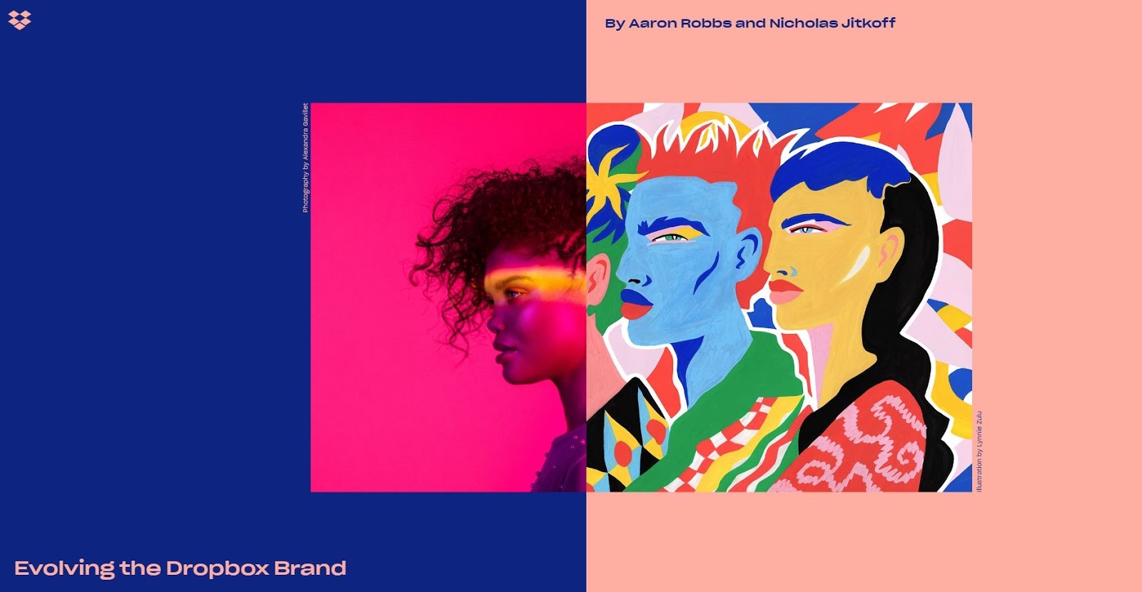 Noul look implică un logo care păstrează acea cutie, doar că este mai plat şi mai abstract, mai degrabă o figură geometrică decât o cutie pentru livrări. Acesta este primul redesign din ultimul deceniu şi o deraiere de la trendul minimalist adoptat de Box, Google Drive sau iCloud. Dropbox îşi schimbă imaginea în acest mod şi vrea să fie cool, edgy şi hip. E folosit şi un font hipsteresc cunoscut ca "Sharp Grotesk".