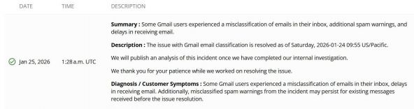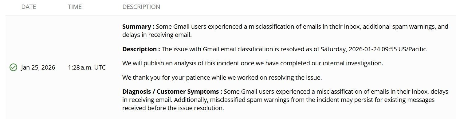 Incidentul a început sâmbătă, 24 ianuarie, și a ținut până duminică, 25 ianuarie. În acest interval, Gmail a început să trimită mesaje din folderele Social, Promotions, Updates sau chiar Spam direct în inboxul principal. Mai neplăcut a fost că unele emailuri legitime, de la surse de încredere, au fost marcate ca spam, declanșând alerte false pentru utilizatori.