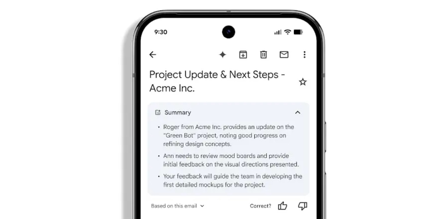 Noile carduri Gemini sunt deja active pe aplicațiile mobile de Android și iOS, iar ideea e simplă: dacă te pierzi prin mailuri lungi sau discuții de echipă care durează zile, primești direct un scurt rezumat cu punctele-cheie. Poți închide cardul dacă nu ai nevoie de el, dar alt avantaj e că se actualizează automat când apare un răspuns nou în thread, fără să faci tu nimic.