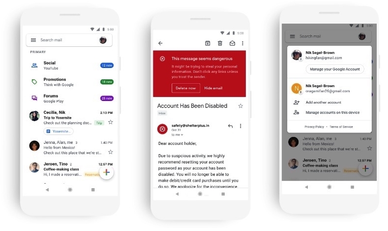 Totodată, versiunea ce nouă aduce mici îmbunătățiri la nivel de accesibilitate precum posibiltatea de a vedea atașamentele din mail-uri (ex: fotografii) fără să fie nevoie să deschidem conversația. De asemenea, acum este mai ușor să facem trecerea de la un cont personal la cel de serviciu și există alerte de culoare roșie pentru acele mail-uri nesigure care ar trebui evitate.