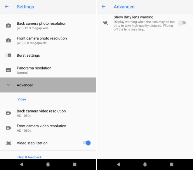 Avem și o actualizare a zonei de setări ce primește noi iconițe, iar de acum înainte gesturile dublu-tap pot fi configurate pentru a realiza diferite acțiuni. Totodată, printre noutățile pe care Google le-a adus aici avem funcția de detectare a lentilelor murdare, aceasta putând fi activată din zona de setări urmând secțiunea Avansat. Dintr-un motiv sau altul tool-ul nu este activat din start, dar acesta se va dovedi tare util.