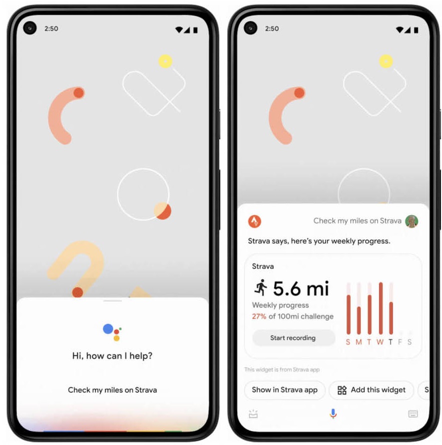 O altă noutate este reprezentată de către faptul că asistentul vocal Google primește acces la widget-uri, care au fost îmbunătățite pentru noul release Android. Ce înseamnă este că telefonul va prelua informații din widget-uri pentru a realiza orice acțiune, precum comanda de mâncare de la restaurantul preferat sau afișarea evoluției în Strava. Atunci când vom cere informații dintr-o aplicație anume, vom avea prezentat un widget cu acele detalii căutate.