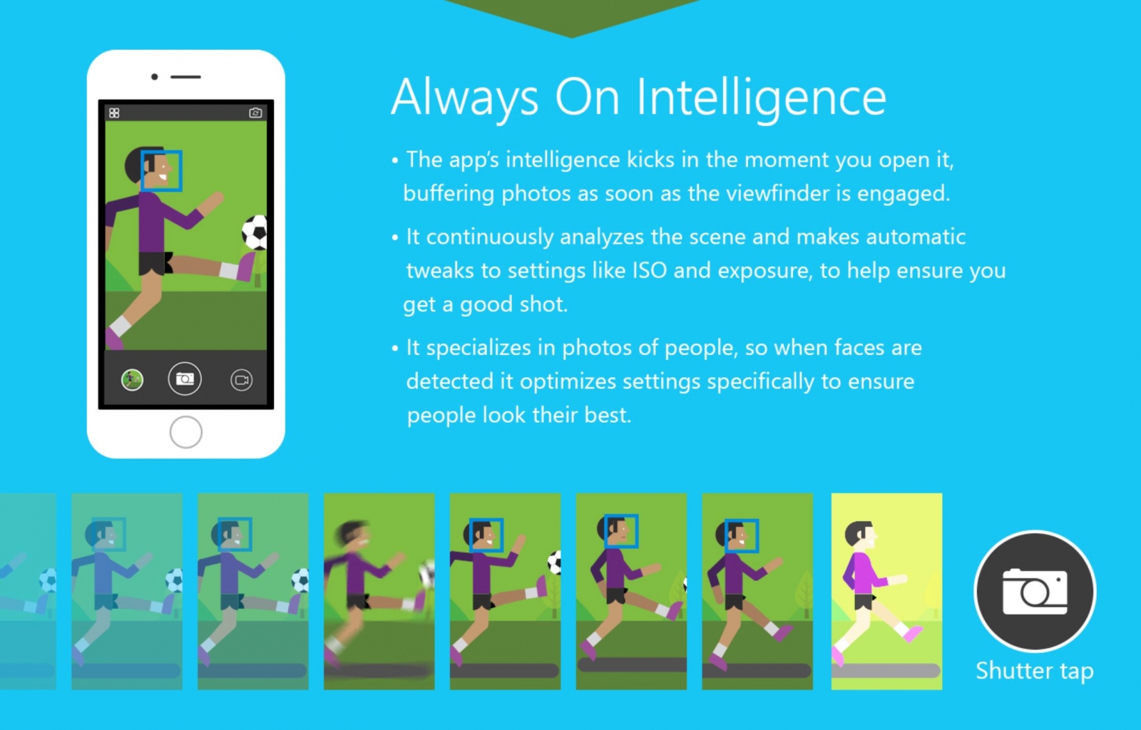 La prima vedere se pare că avem de-a face cu o combinație dintre aplicațiile Blink și Selfie ce sunt disponibile în acest moment pentru terminalele Windows Phone. Din câte aflăm, odată ce Microsoft Pix detectează momentul în utilizatorul încearcă să realizeze o fotografie, va selecta și va îmbunătăți cele mai bune imagini.