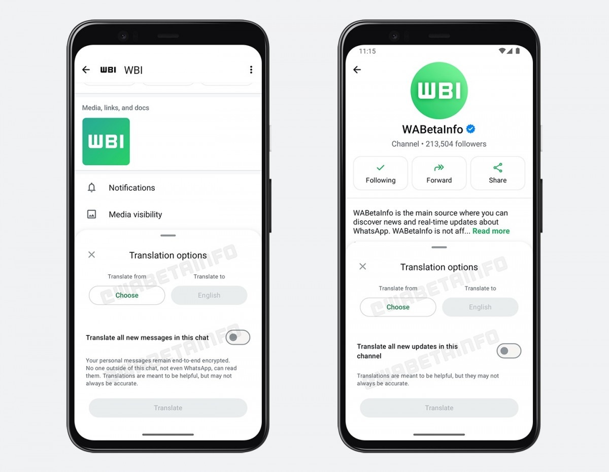 Momentan traducerea pare că va sosi doar pentru canalele de WhatsApp. Astfel, actualizările vor fi traduse în mai multe limbi. Merită menționat încă că spre deosebire de traducerile obișnuite care necesită conexiune la internet, WhatsApp implementează traducerea direct pe dispozitiv. Această abordare presupune descărcarea unor pachete lingvistice, dar și o posibilă limitare a acurateții când vine vorba de traducere.