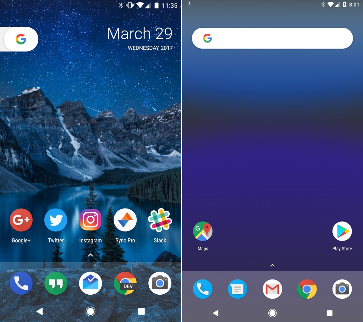 Google îşi continuă actualizările discrete şi fără tam tam pentru Pixel Launcher, care ar fi primit o schimbare de look pe unele terminale Android. Mai jos găsiţi modul în care arata Pixel Launcher până acum în stânga şi apoi varianta nouă în dreapta.