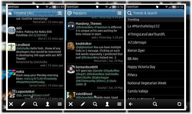 Dacă tot am avut un Nokia 808 PureView în teste, am decis să aruncăm o privire pe câteva aplicații pentru Nokia Belle. Printre ele se numără și Tweetian, un client de Twitter pentru Symbian, pe care îl găsiți în Nokia Store, disponibil gratuit. Aparent acesta este singurul client Twitter pentru Symbian scris în Qt/Qml în afară de TwimGo.