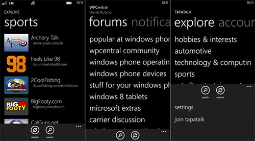 Aplicația există deja pe iOS și Android și este disponibilă sub formă de private beta pe Windows Phone 8. Se lucrează și la o versiune pentru Windows Phone 7.x și acest soft e deja popular în rândul membrilor comunităților de pe web. Clientul va fi disponibil gratuit, dar va exista și o versiune Pro, care va costa. Funcțiile aplicatiei includ acces la 60.000 de comunități online, integrare a ID-ului Tapatalk și posibilitatea de a crea un topic nou sau a răspunde în cadrul unuia.