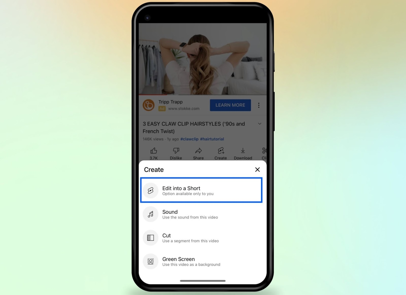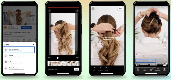 YouTube va pune şi link spre video-ul original pentru a atribui sursa, dacă foloseşti clipul altcuiva. Doar creatorul unui video îl poate importa pe acesta la cea mai bună calitate în Shorts. Aparent acest tool se găseşte şi pe Android şi pe iOS, dar doar în anumite regiuni. Apar şi alte funcţii utile, precum Cut şi Green Screen, pentru momentele când vrei să iei clipuri de la alţi creatori de conţinut. "Edit Into a Short" ar putea atrage multă lume spre Shorts.