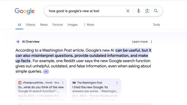 Nu e prima „gherlă” de genul, în februarie generatorul de imagini Google, cel pe bază de AI, a prezentat figuri istorice cu tonalități ale pielii mai închise la culoare. Google a fost forțată să suspende acea funcție, ca urmare a erorii. Revenind la AI Overview, el oferă un rezumat al răspunsurilor la întrebări puse pe Google Search și apare în zona de sus a ecranului.