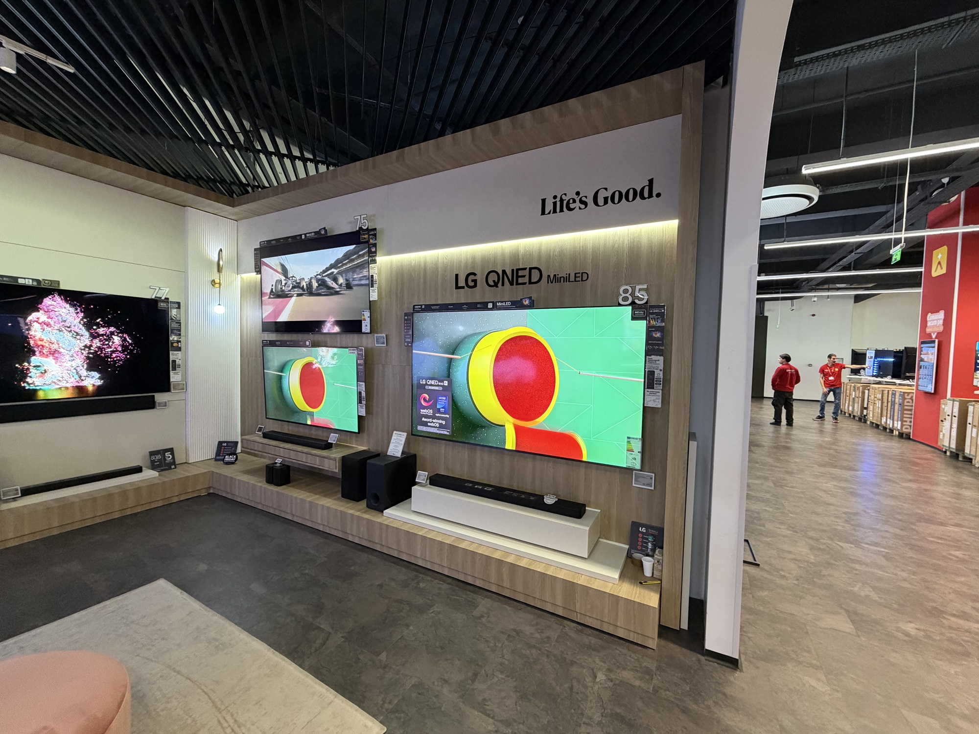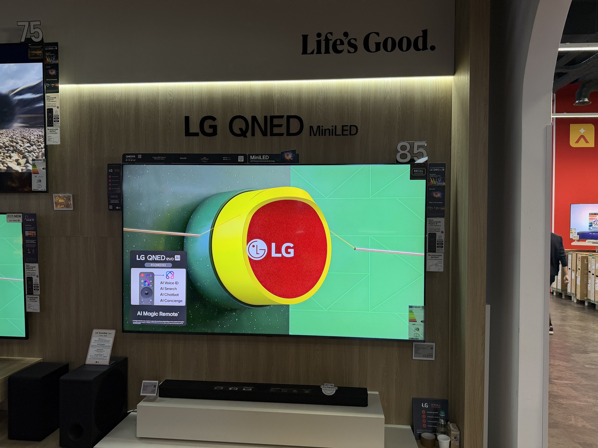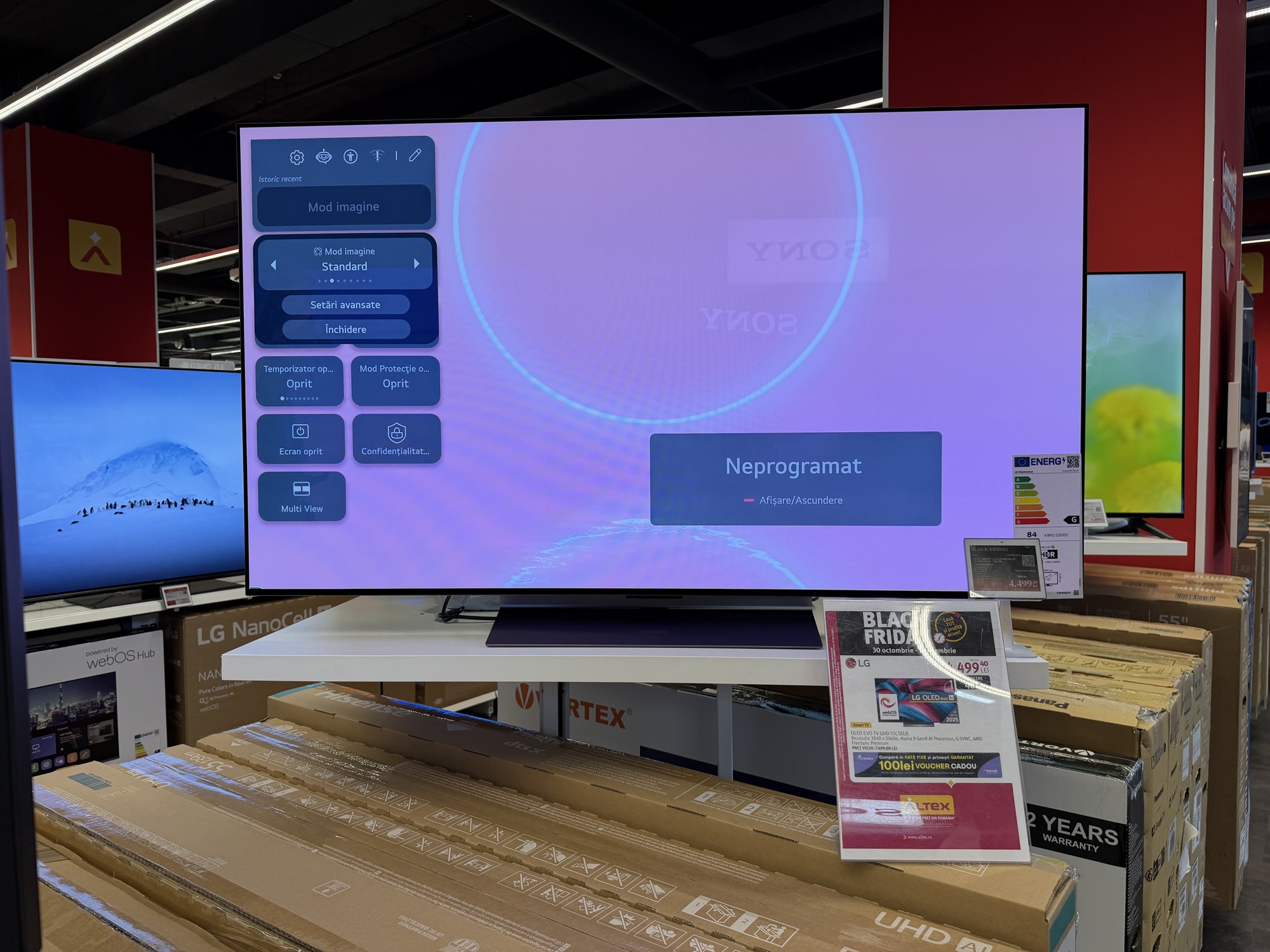 La standul LG TV de la etajul 1 Altex Nord vă aşteaptă Marco şi un coleg al său, care vă vor oferi toate detaliile necesare. Vă vor sfătui ce TV LG ar fi ideal pentru fiecare tip de cameră, de hobby, de cinefil sau gamer. E util să ai aşa ceva, faţă de alte magazine, unde explorezi singur şi te pierzi în aglomeraţie, fără ajutor.