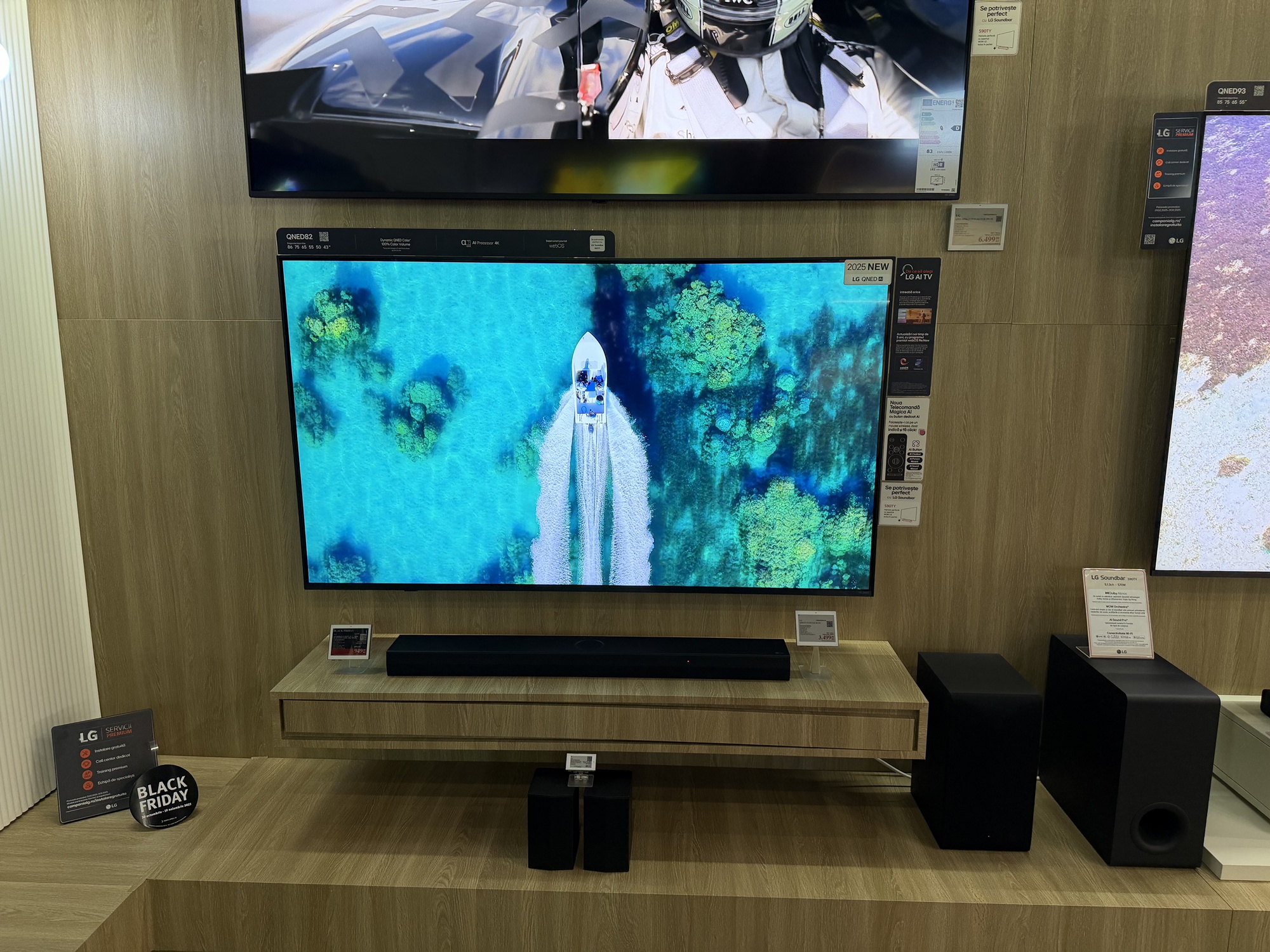 Am văzut şi televizoare QNED cu diagonale mari la reducere, dar şi varianta de bază e atractivă. TV-ul QNED Smart LG 43QNED7045A, e un model 4K HDR de 108 cm. De obicei costa 2099 lei, dar de Black Friday scade la 1499 lei. Acelaşi TV, dar la 139 cm costa 1899 lei, de la 2099 lei. Iar varianta pentru sufragerii mari, de 164 cm costa 2399 lei în loc de 2549 lei.