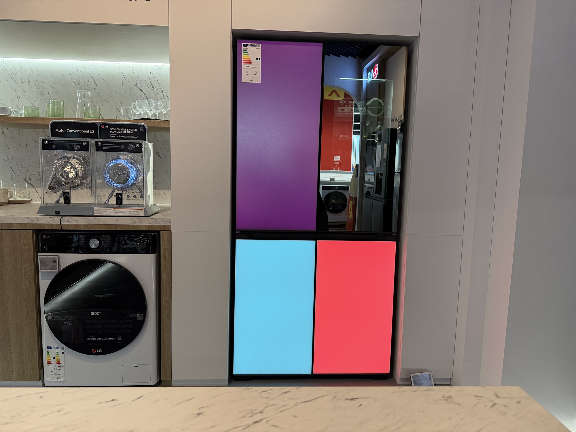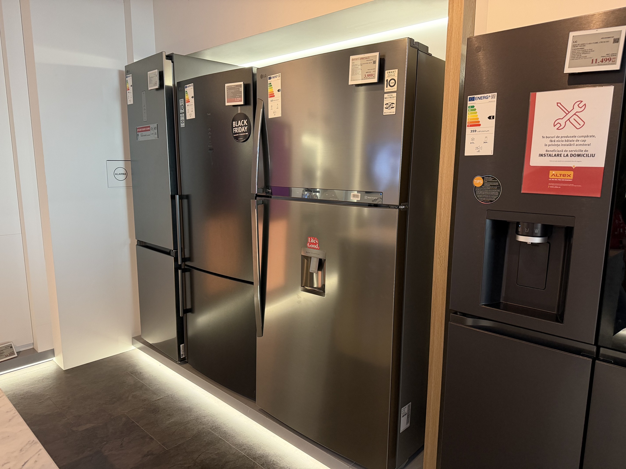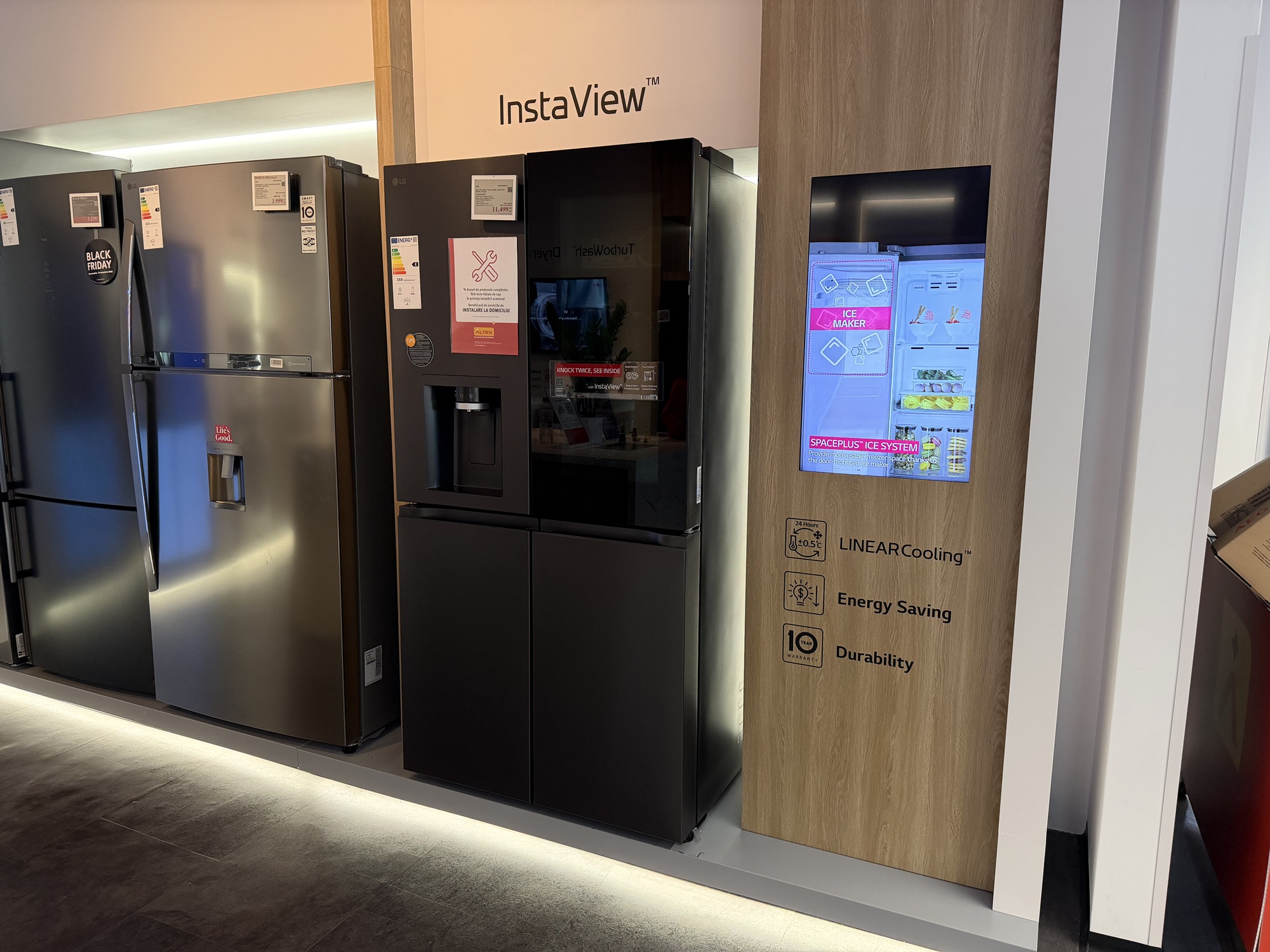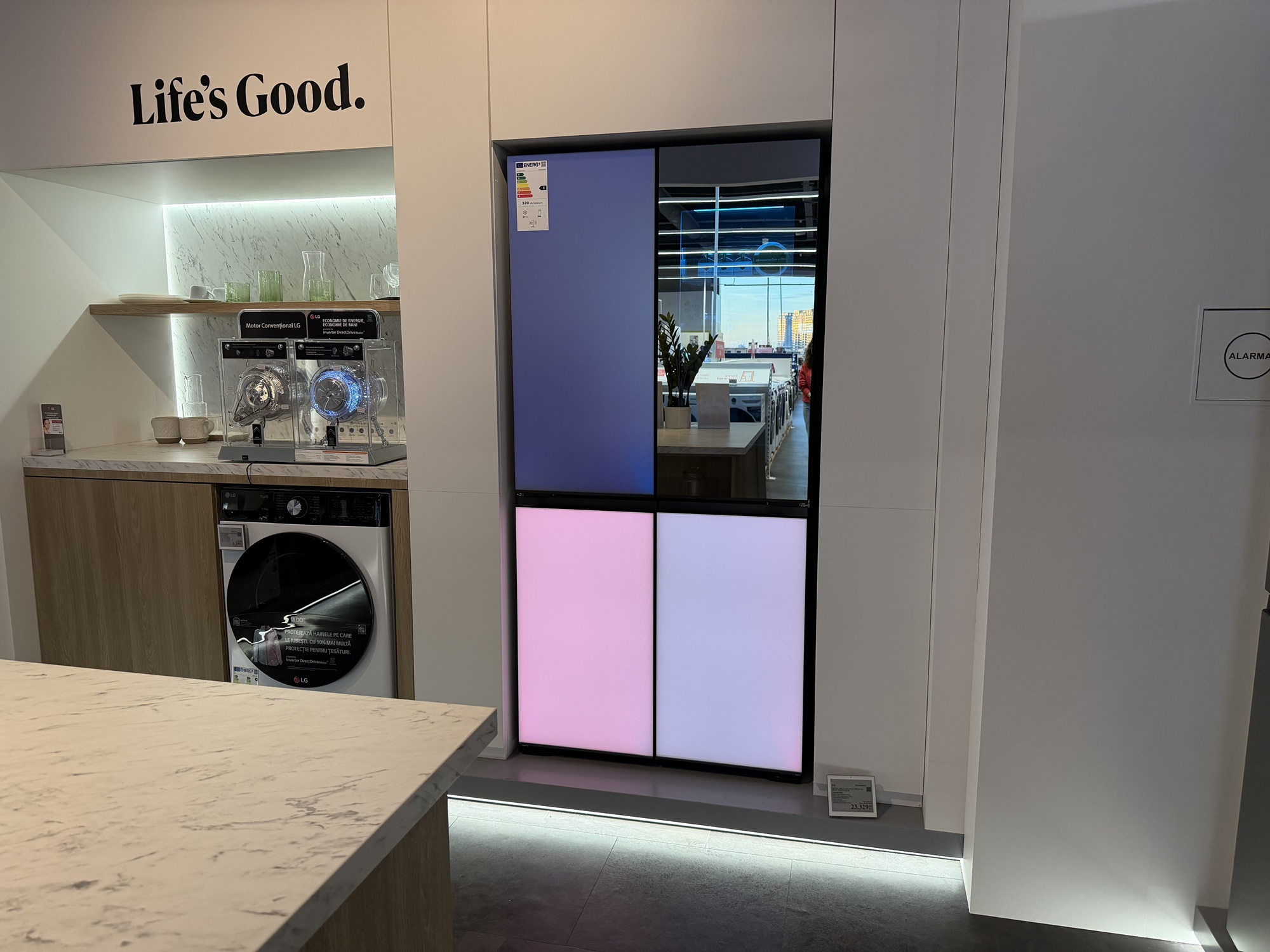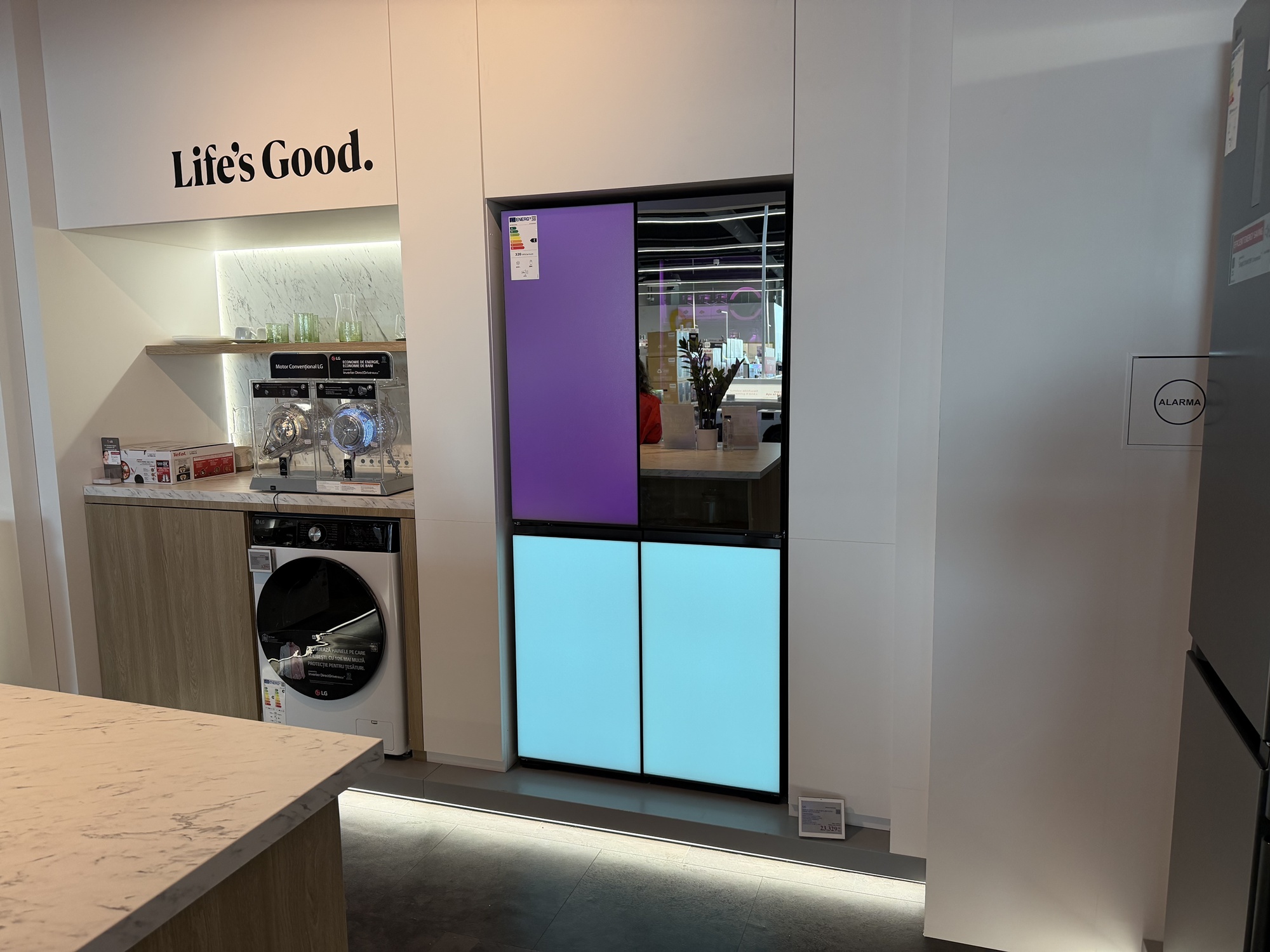La etajul 2 Altex Nord e standul LG de electrocasnice. Aici te aşteaptă Mihaela, care ca şi Marco te va sfătui cu privire la maşini de spălat, frigidere şi alte electrocasnice. Aici am văzut un frigider funky LG MoodUP, care îşi iluminează panourile pe ritm de muzică, iar geamul sau devine transparent dacă îl ciocăni, pentru a vedea înăuntru.