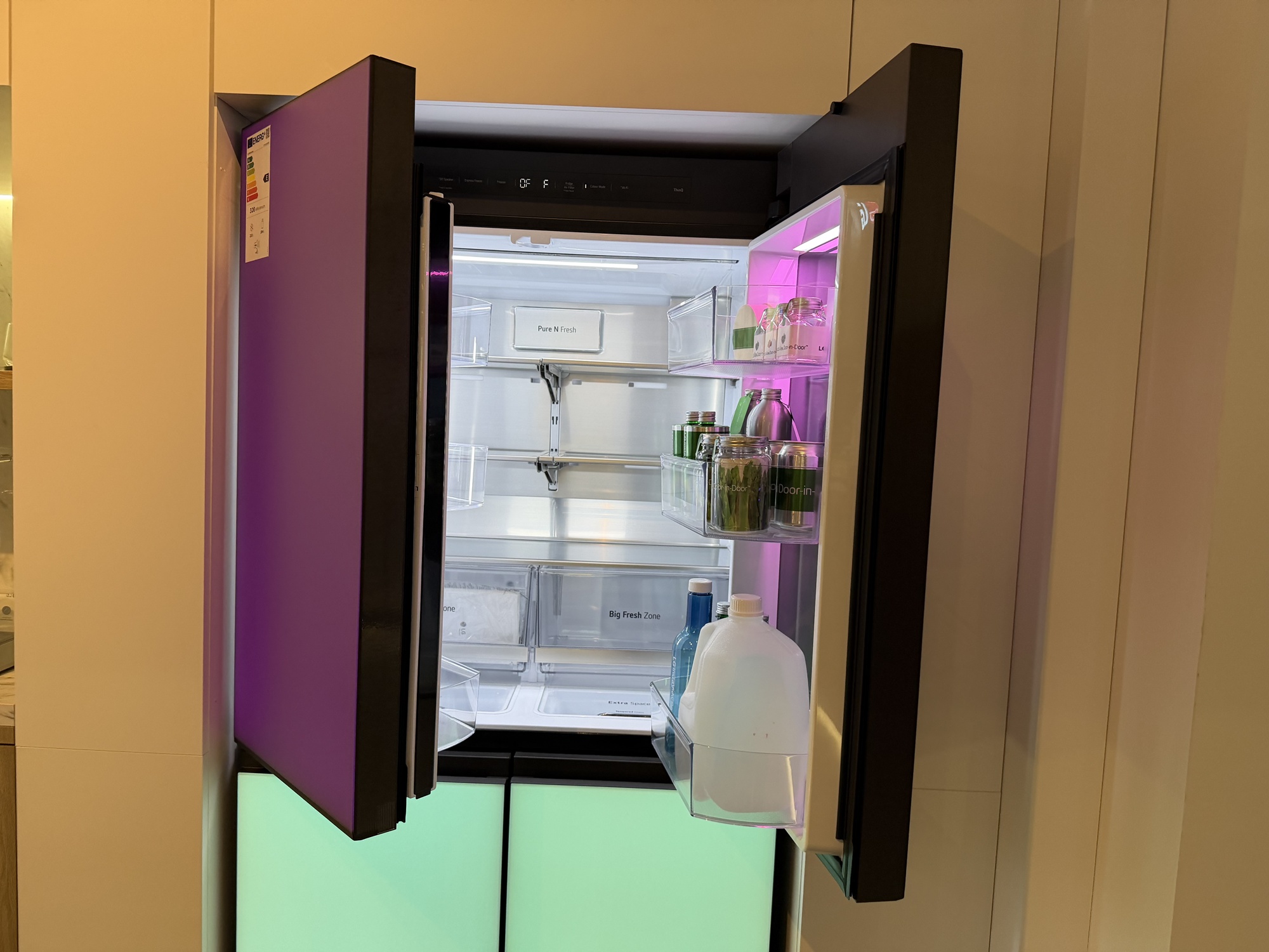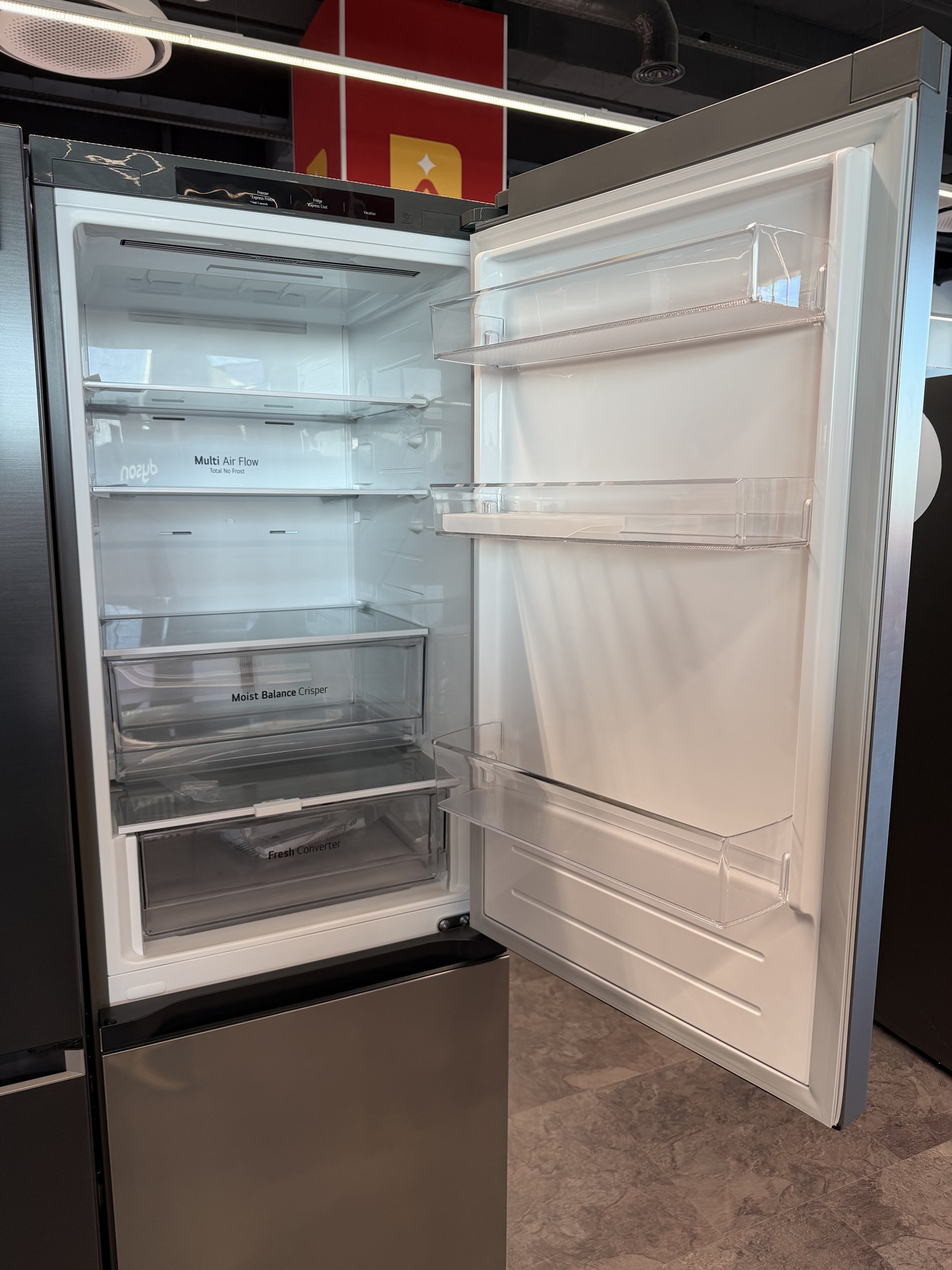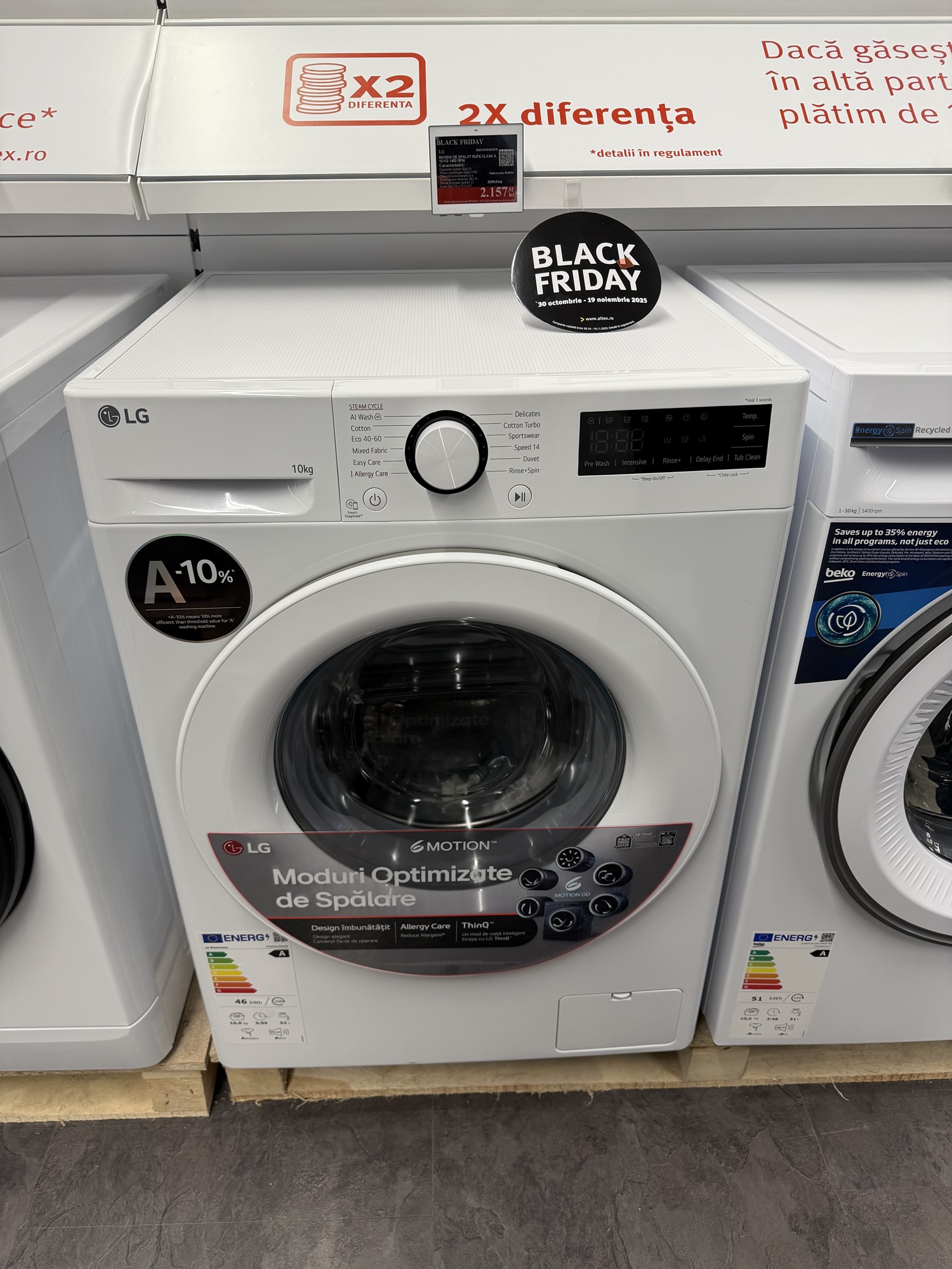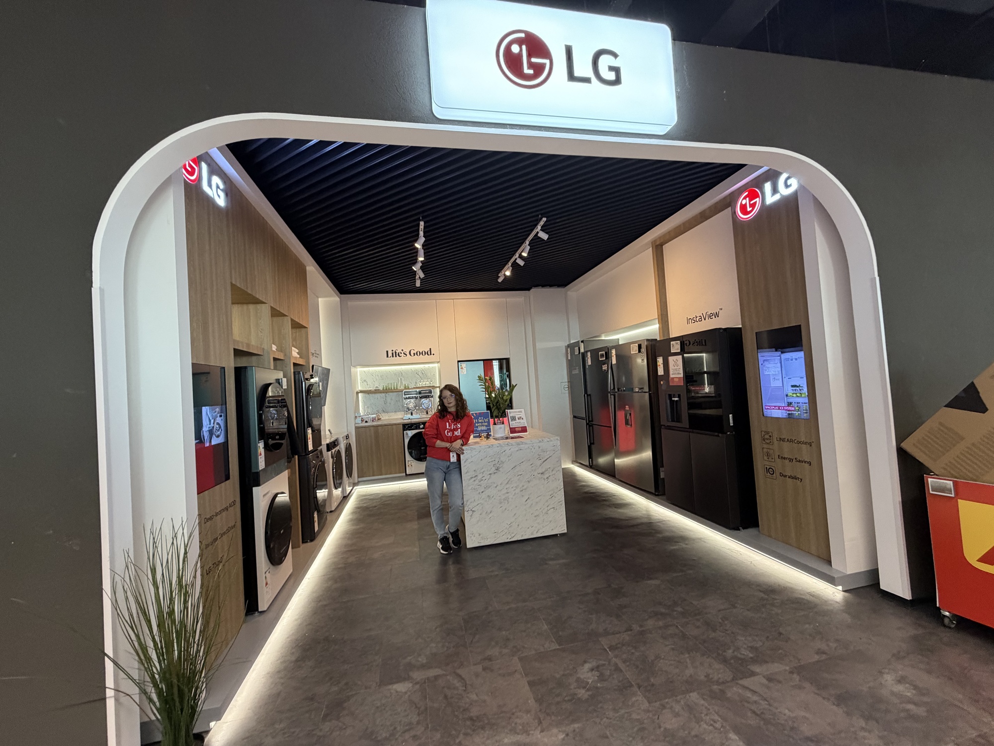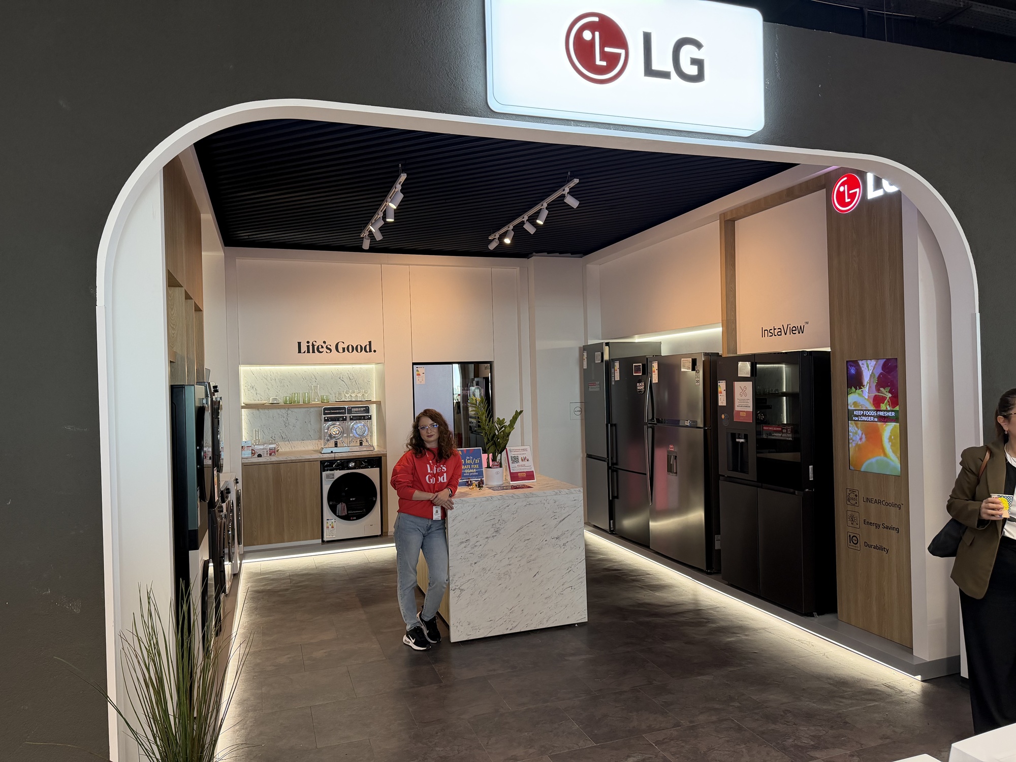 La etajul 2 Altex Nord e standul LG de electrocasnice. Aici te aşteaptă Mihaela, care ca şi Marco te va sfătui cu privire la maşini de spălat, frigidere şi alte electrocasnice. Aici am văzut un frigider funky LG MoodUP, care îşi iluminează panourile pe ritm de muzică, iar geamul sau devine transparent dacă îl ciocăni, pentru a vedea înăuntru.