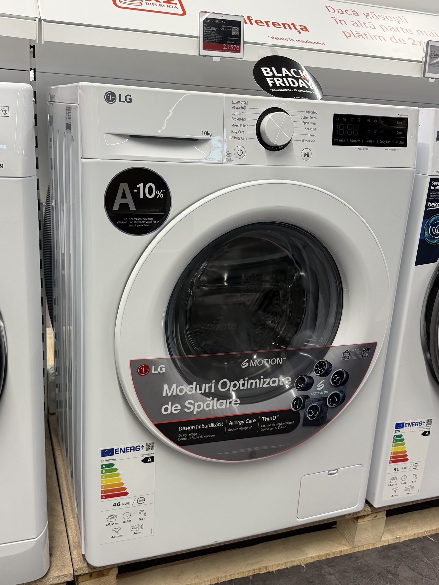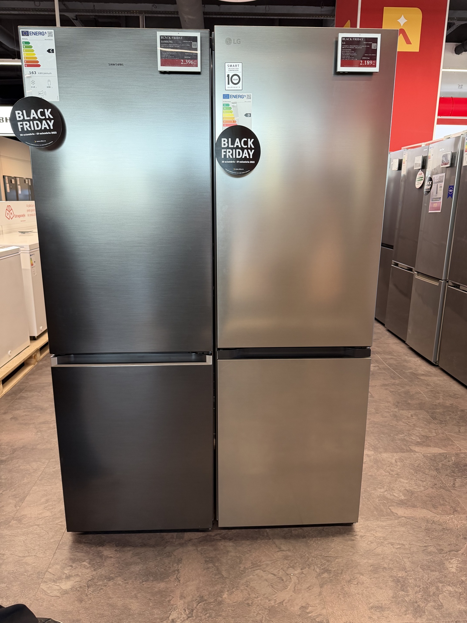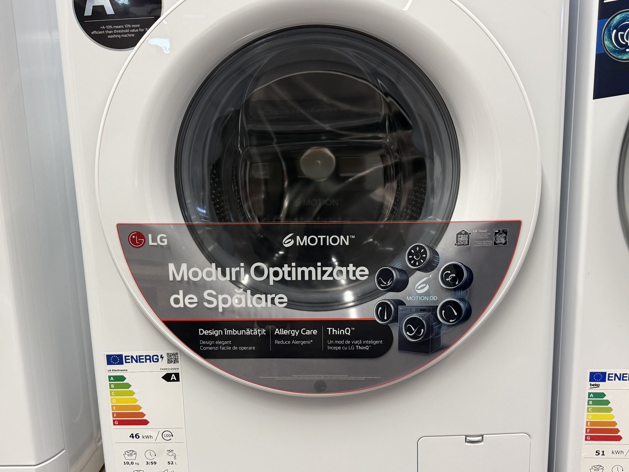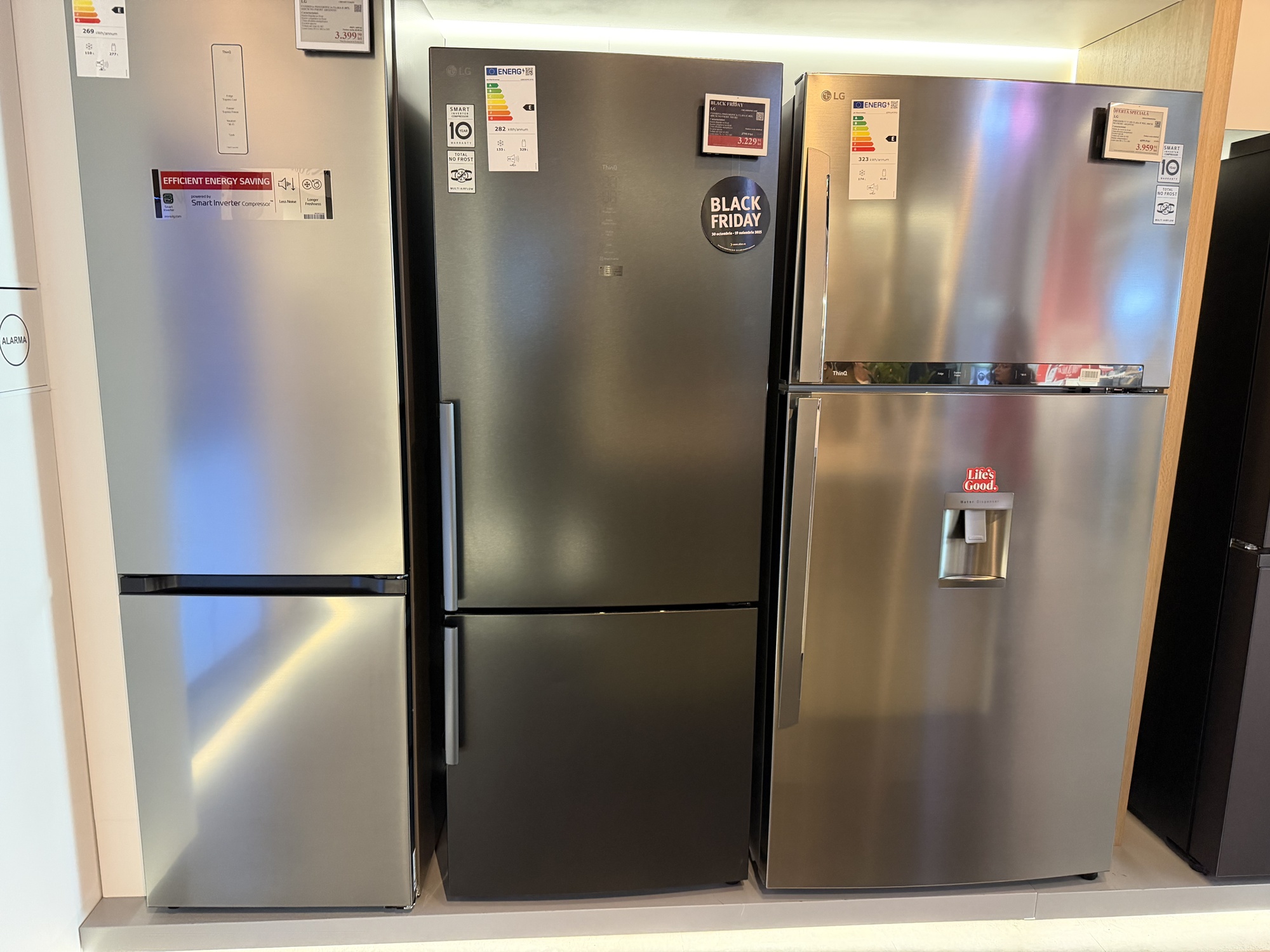 Am mai văzut şi un frigider cu rafturi telescopice, cu ventilaţie rece pentru răcirea uşii mai rapidă, dar şi două modele pe care le poţi programa când eşti la birou, să răcească rapid preparatele pentru când vin musafirii. Atenţie şi la cei 10 ani garanţie compresor pentru frigider şi invetor pentru maşina de spălat.