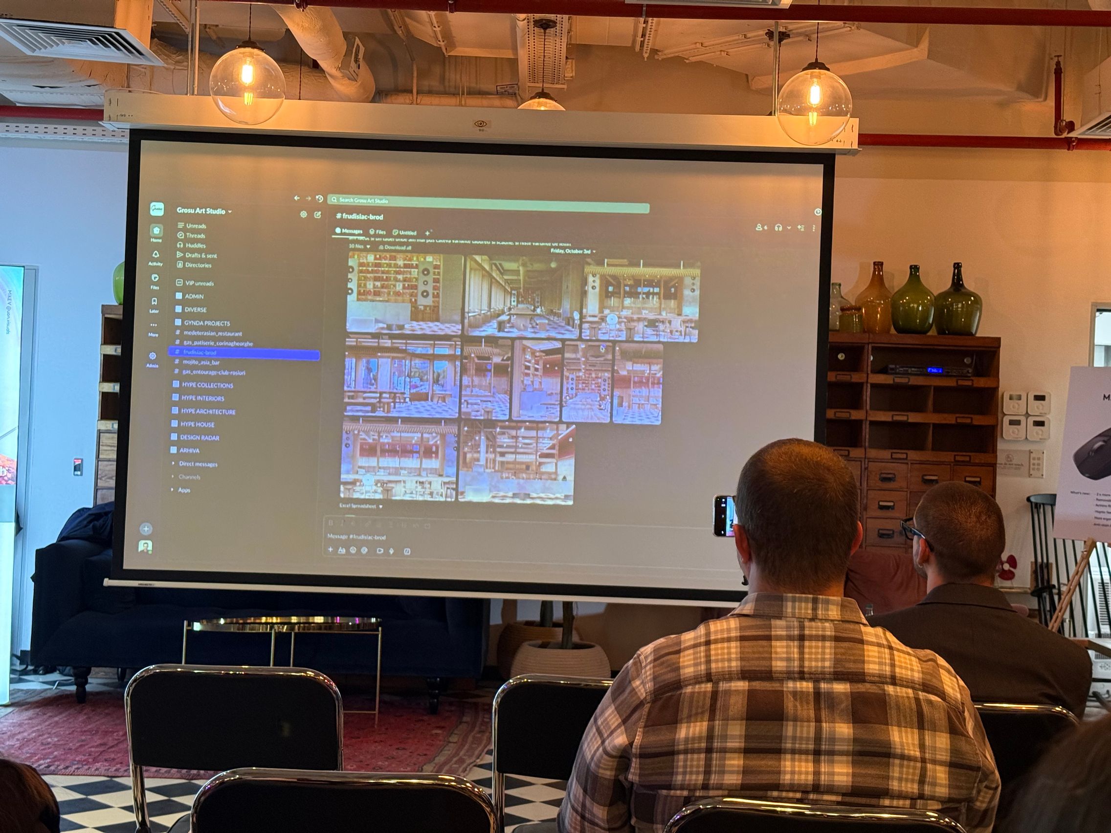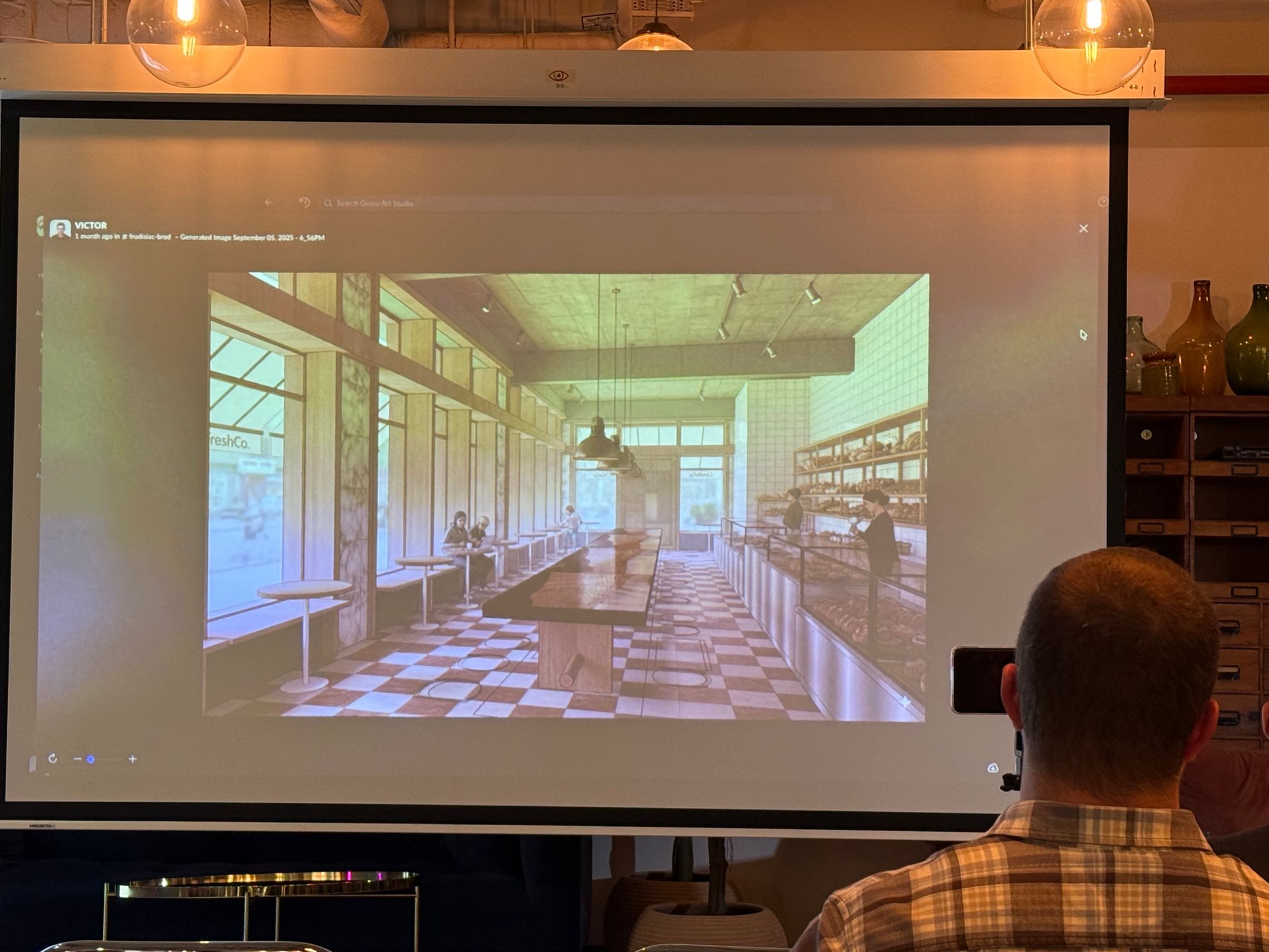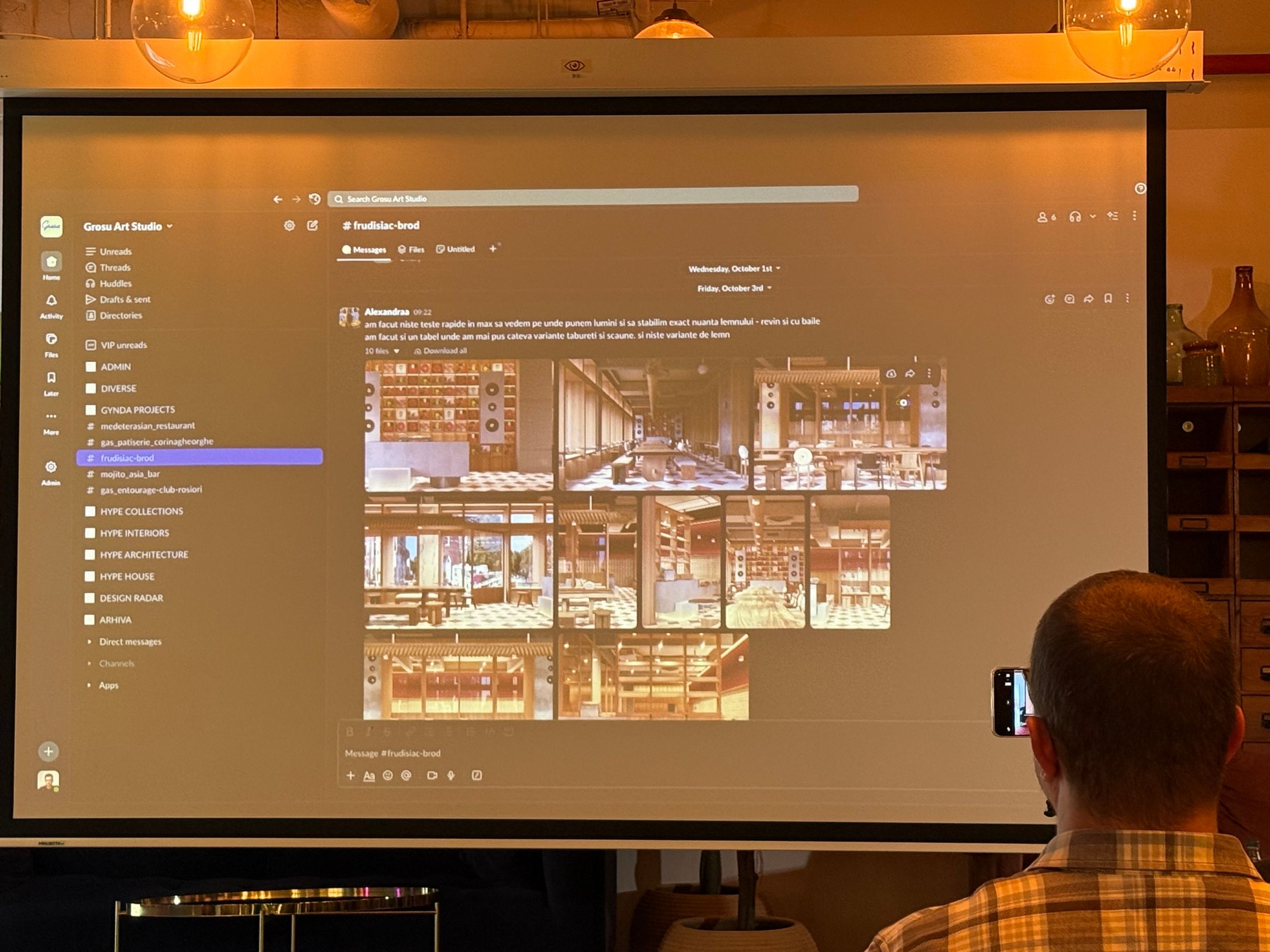 M-a fascinat în special prezentarea lui Victor Grosu. Am văzut cum lucra cu colegi ai săi pe Slack la un proiect de apartamente în Dubai, dar şi la designul unui restaurant din Floreasca. Arhitect fiind, lucra mult cu Figma. Se ajută şi de AI şi de la o schiţă desenată de mână ajunge rapid la un concept de randare care arată ca un restaurant... real.