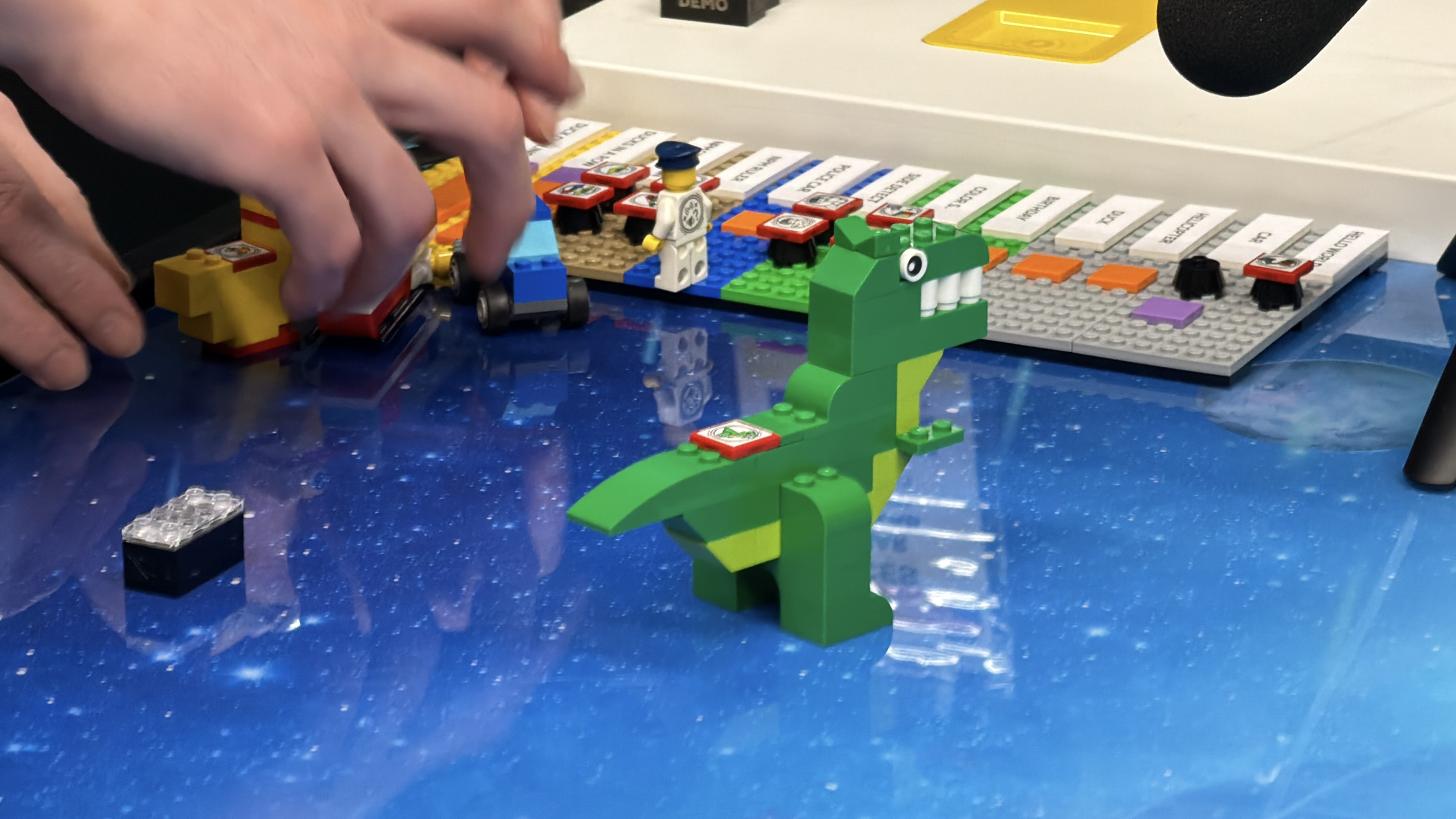 Ele vor recunoaşte contextual apoi vor decide cum trebuie să se comporte, după culori, proximitatea de alte piese. Am văzut rățuște care îşi urmează mama sau măcăne, prin Smart Brick, un duel între un Jedi şi un Sith, cu sunetele aferente de light saber, dar şi o bătălie între o navă Ţie Fighter şi un X Wing. Brick-ul ştie că trebuie să simuleze o sirenă de poliţie dacă e cazul, un „pleoșc” în apa de pe barca unui omuleţ şi alte zeci, sute, mii de scenarii.