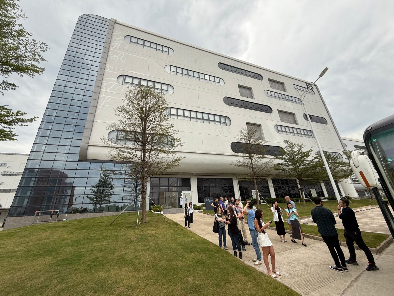 În primul rând nu am o abundenţă de fotografii sau video-uri, deoarece a trebuit să lăsăm telefoanele, genţile la intrare. Am putut face doar poze la intrare şi ne-am echipat cu halate, şepci şi încălţăminte specială, plus o cască pentru traducere. Parcul industrial este de mare anvergură, ai nevoie de o maşinuţă să călătoreşti între zonele sale. Ocupă 135.000 de metri pătraţi, include 5 clădiri în care se desfăşoară producţia şi două laboratoare.