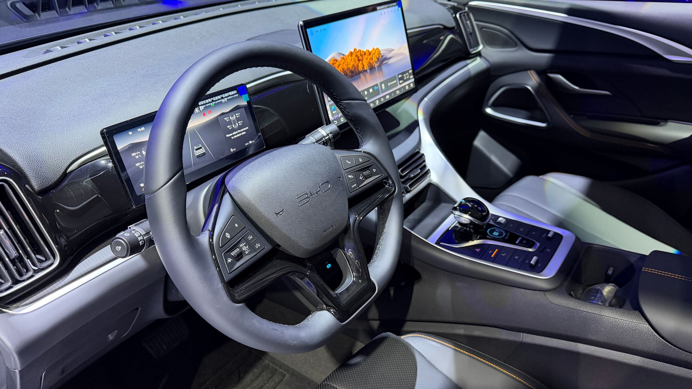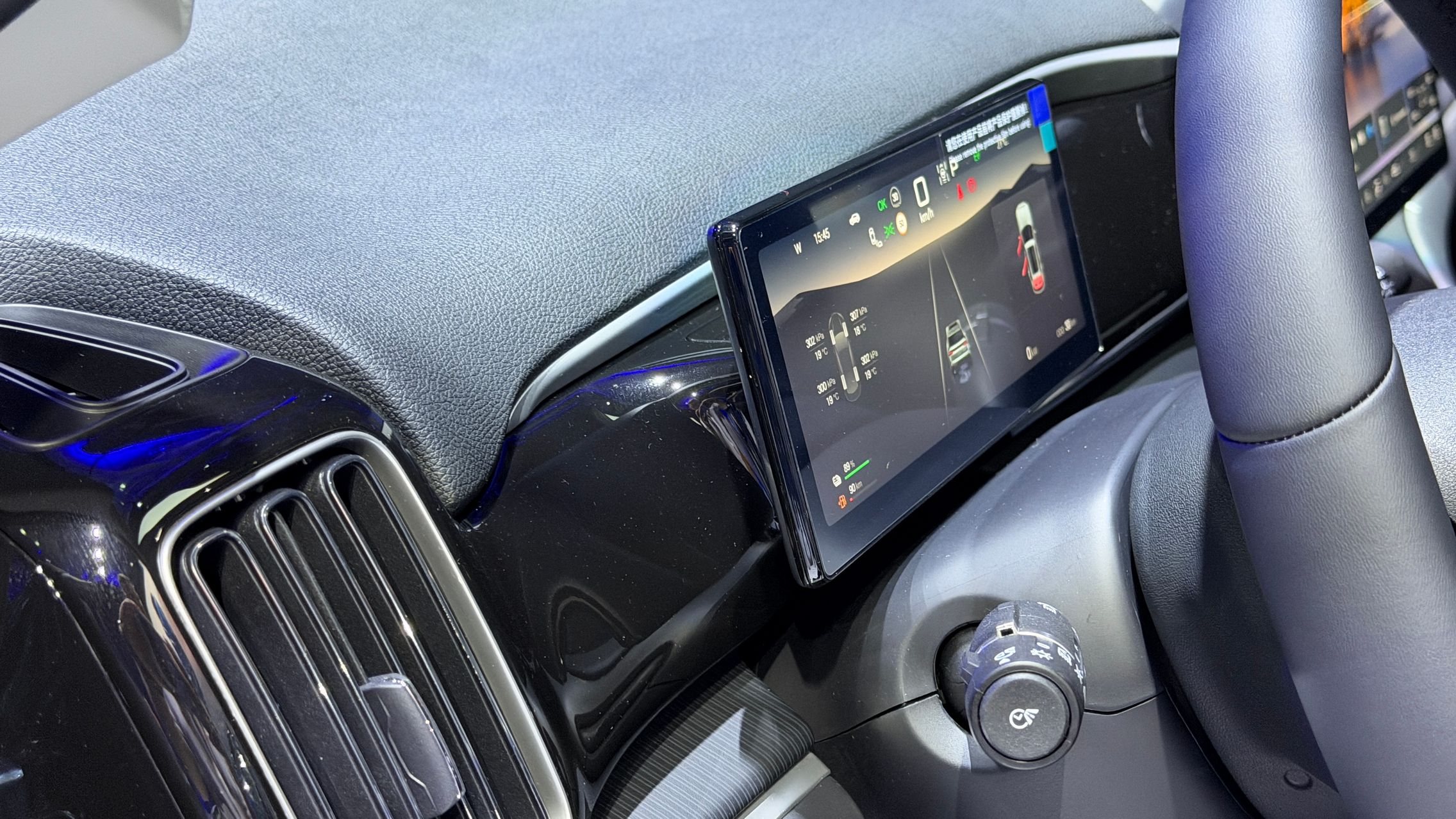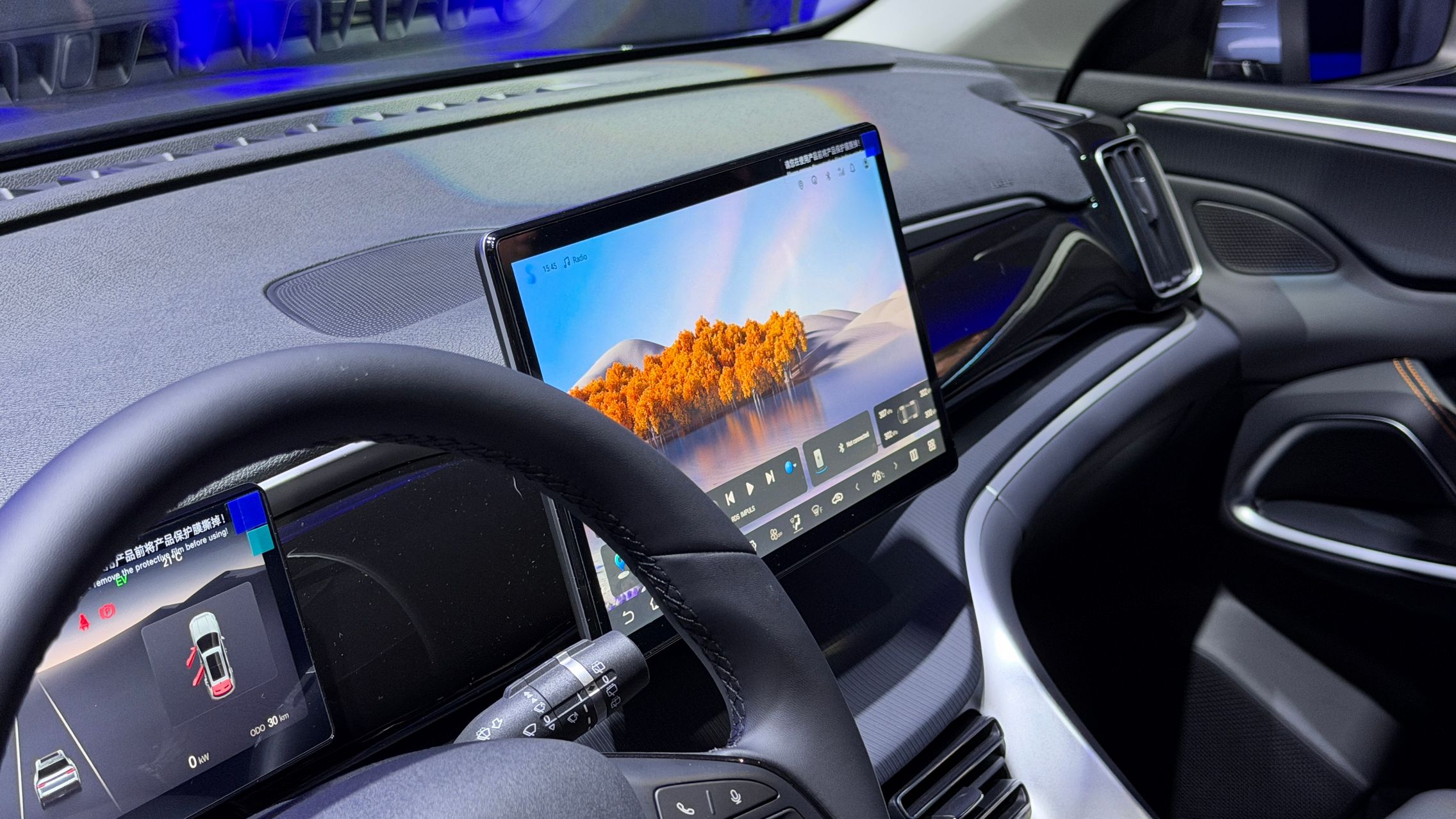 Are acel ecran rotativ de 12,8 inch, Apple CarPlay, Android Auto, încărcare wireless pentru telefon, plus instrumentar digital de 8,8 inch.