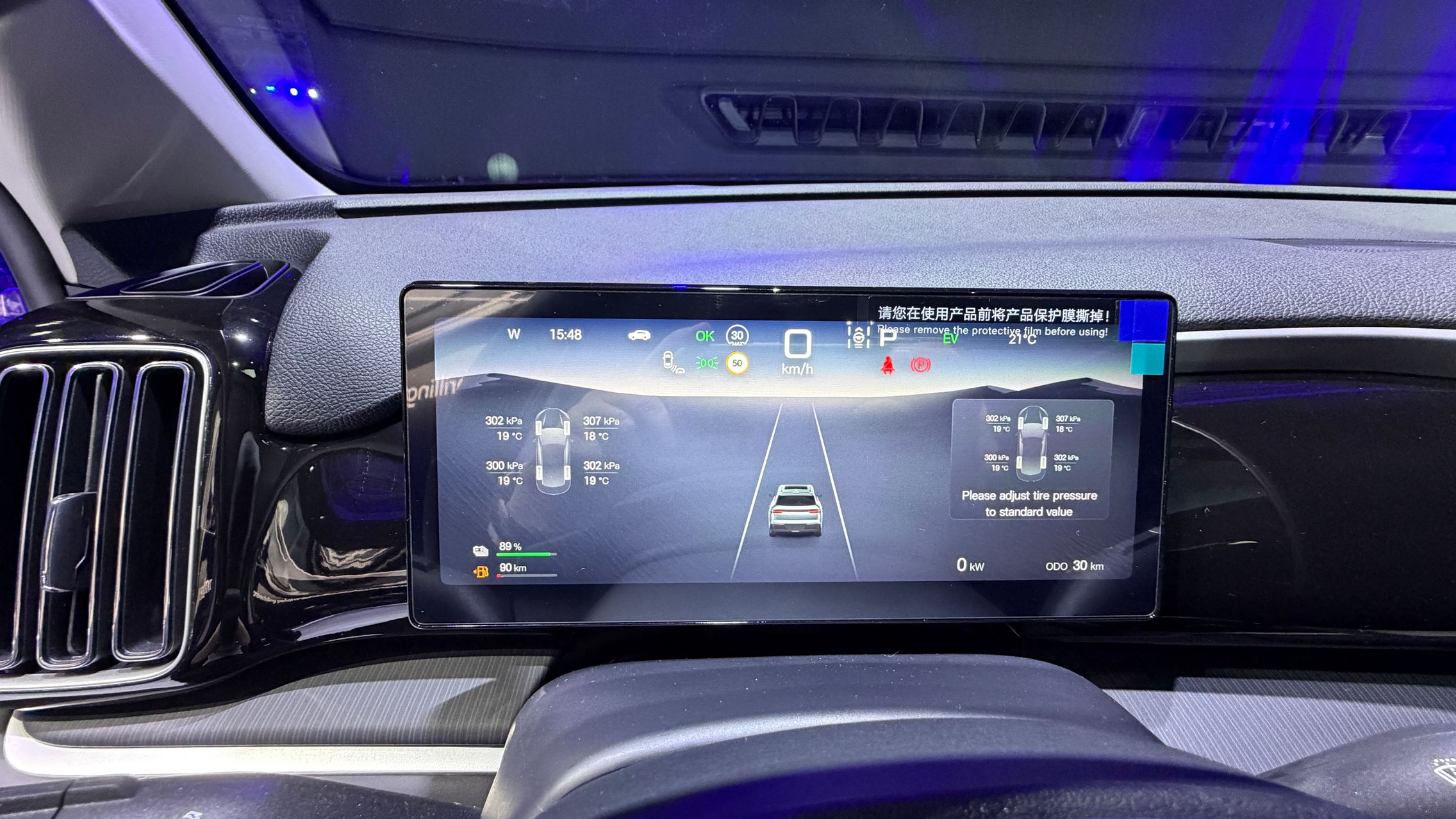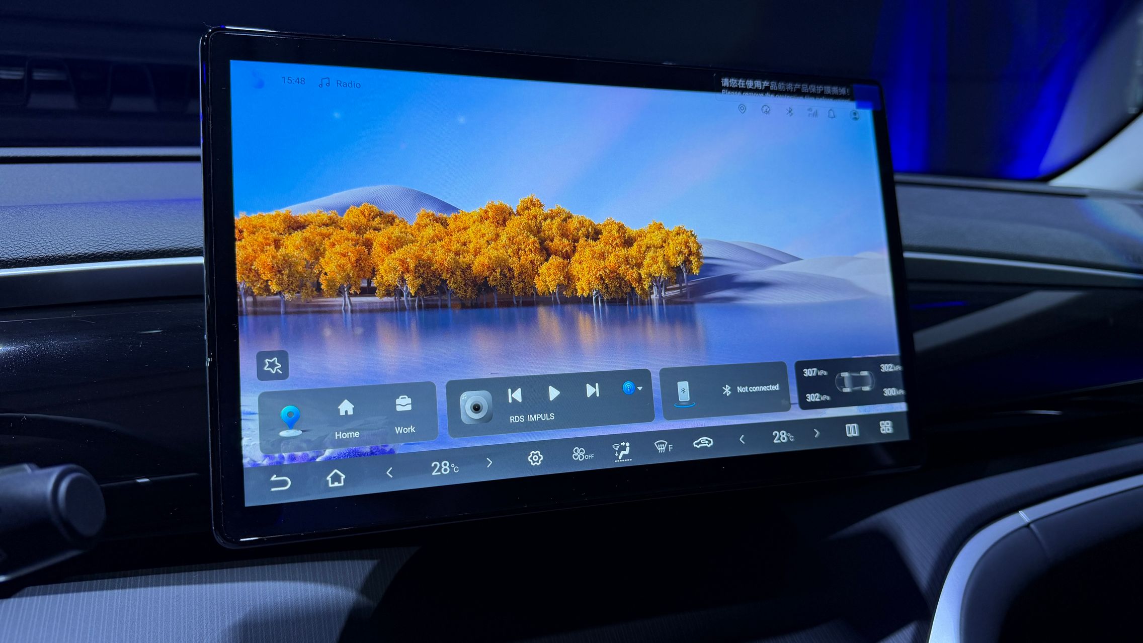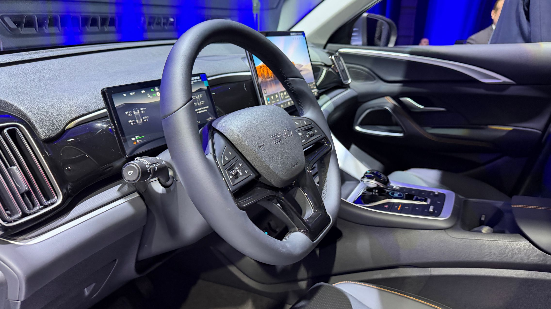 Are acel ecran rotativ de 12,8 inch, Apple CarPlay, Android Auto, încărcare wireless pentru telefon, plus instrumentar digital de 8,8 inch.