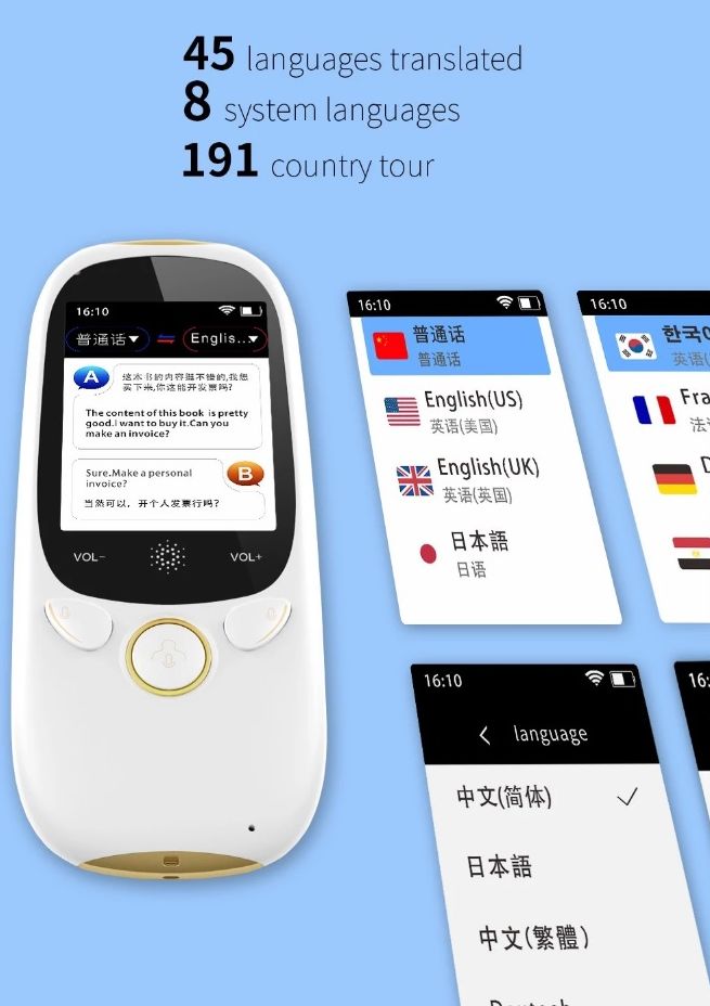 Printre limbile suportate se numără chineza, româna, coreeana, norvegiana, rusa, portugheza, franceza, ebraică, finlandeză sau olandeză. Practic vorbiţi în microfon şi aveţi traducerea imediată pe ecran sau audio. Poate traduce şi conversaţii în multiple limbi.