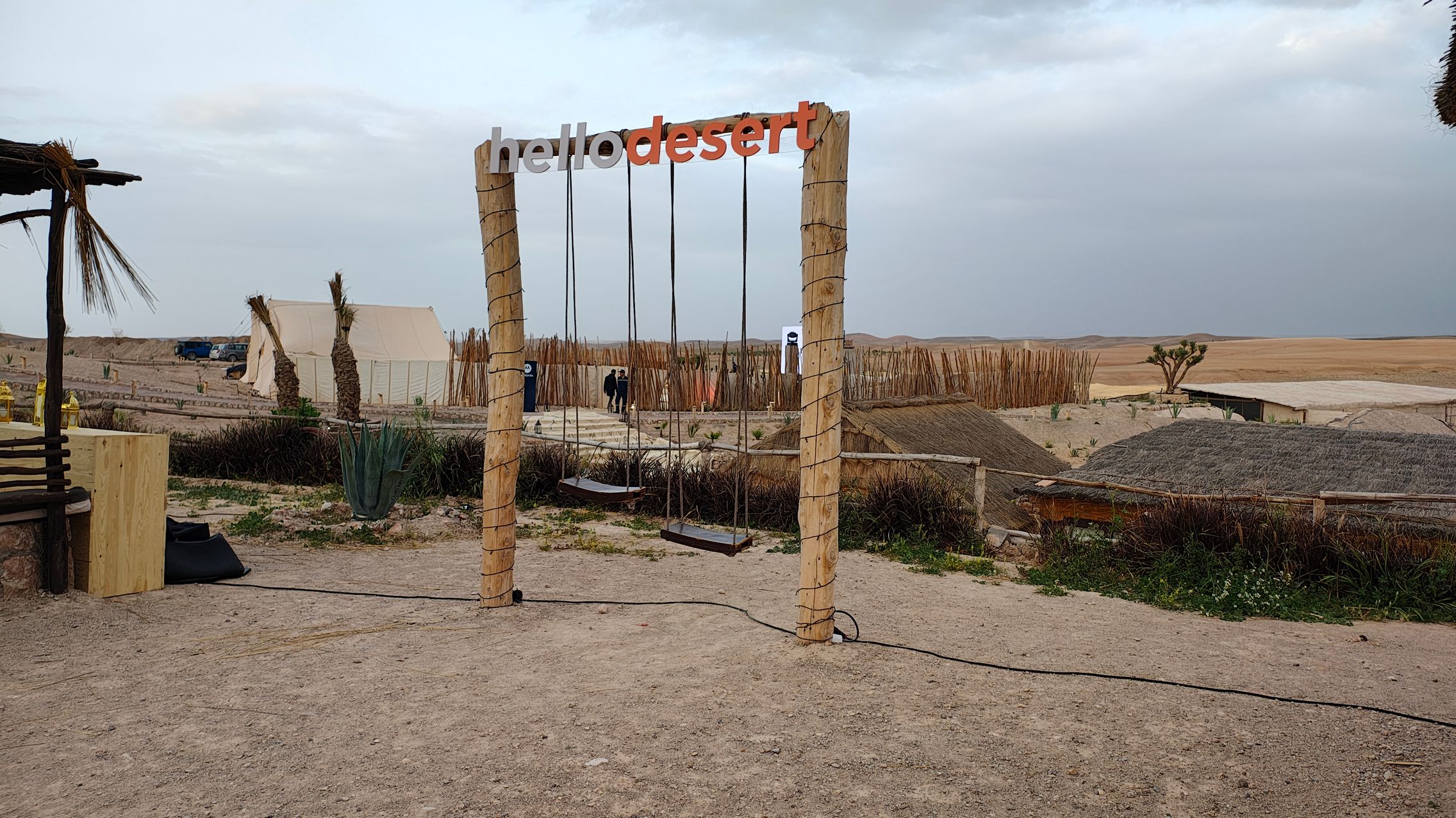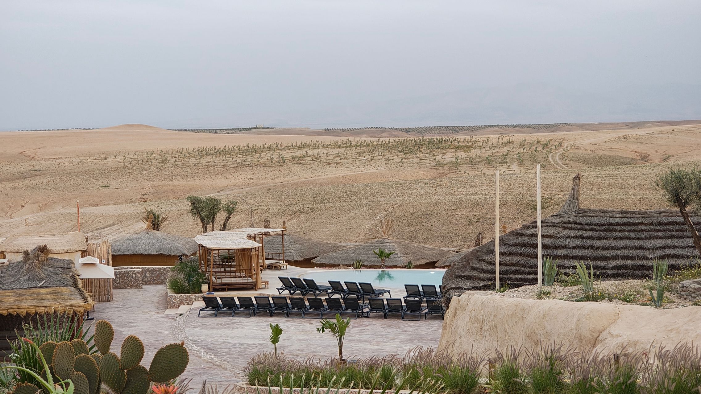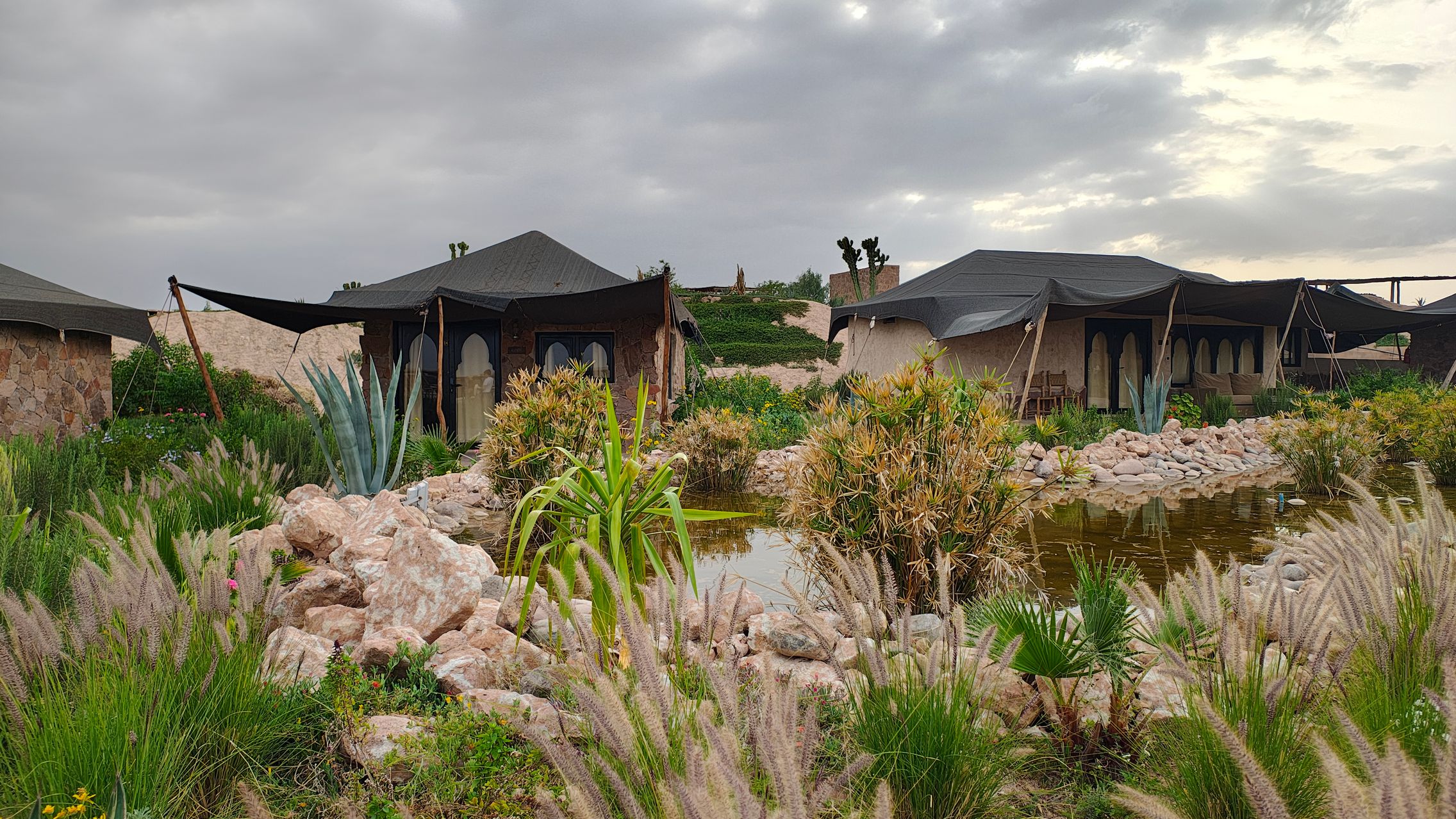 După un drum de mai bine de o oră am ajuns în deșertul Agafay, un drum de aproximativ 30 km parcurs foarte greu din cauza asfaltului de proastă calitate, sau mai bine zis inexistent. Am fost cazați în tabăra Le Bedouin Agafay, o locație cu toate necesitățile, de la Wi-Fi, la duș, piscină, restaurant și tot ce îți poți dori pentru relaxare în mijlocul deșertului.