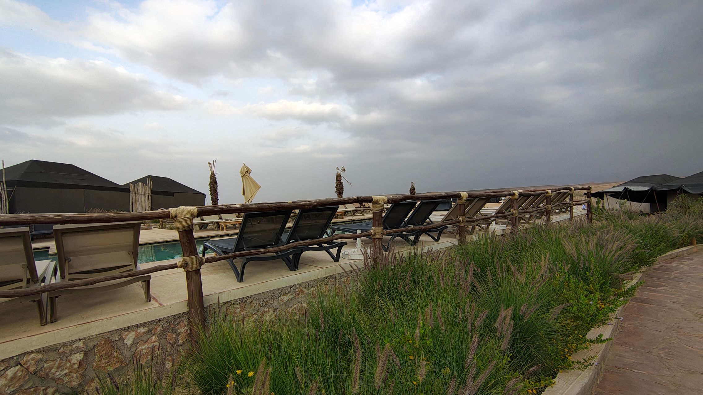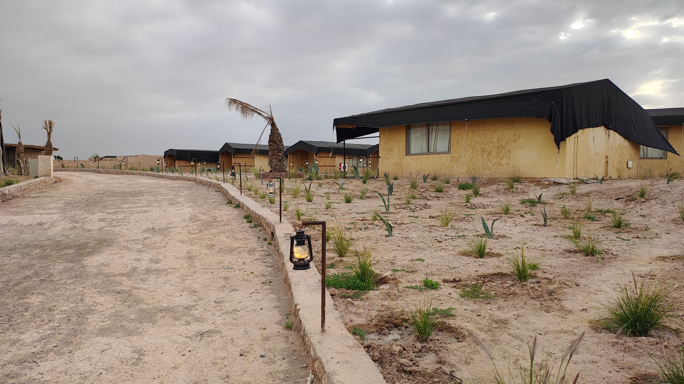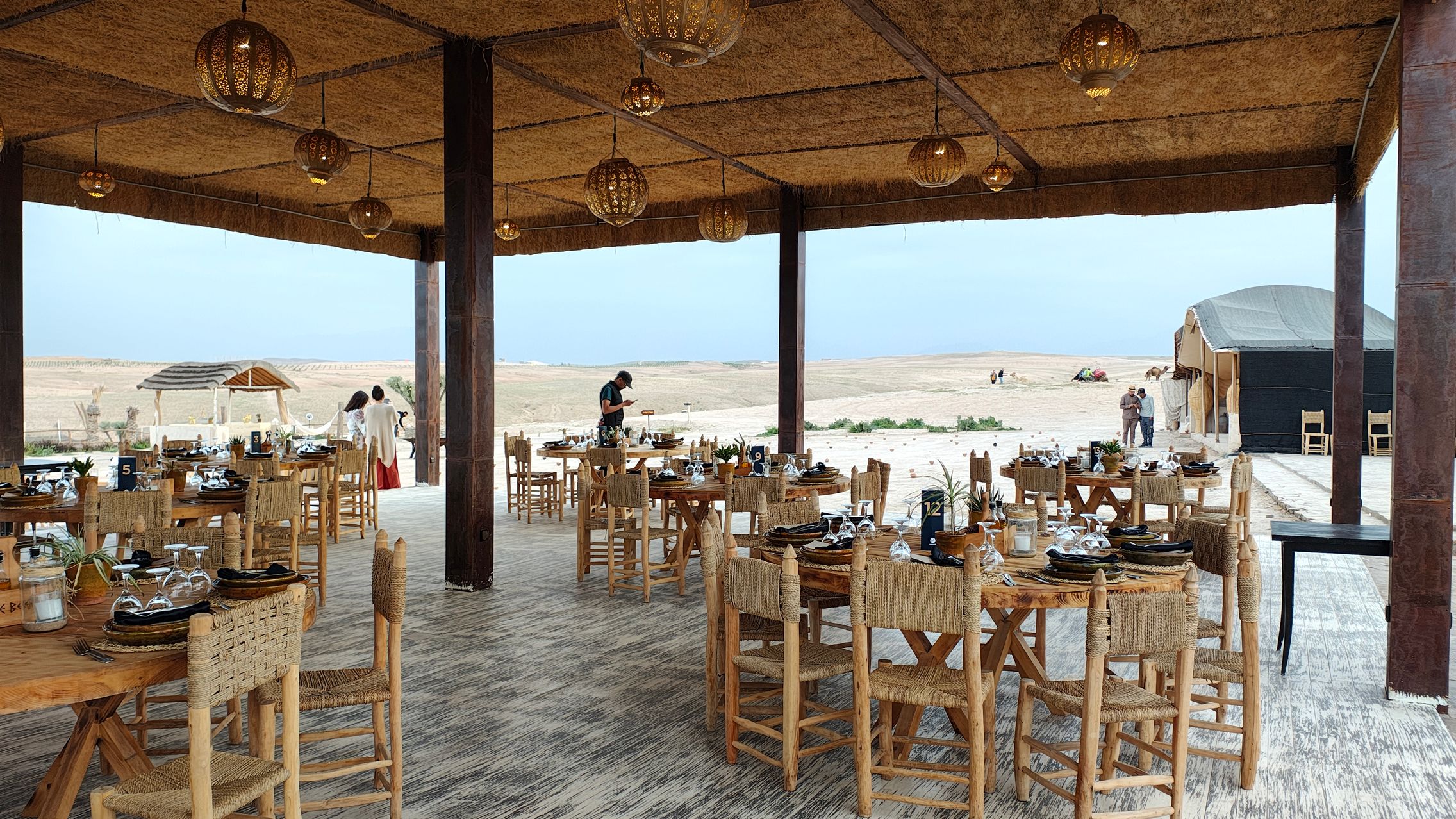 După un drum de mai bine de o oră am ajuns în deșertul Agafay, un drum de aproximativ 30 km parcurs foarte greu din cauza asfaltului de proastă calitate, sau mai bine zis inexistent. Am fost cazați în tabăra Le Bedouin Agafay, o locație cu toate necesitățile, de la Wi-Fi, la duș, piscină, restaurant și tot ce îți poți dori pentru relaxare în mijlocul deșertului.