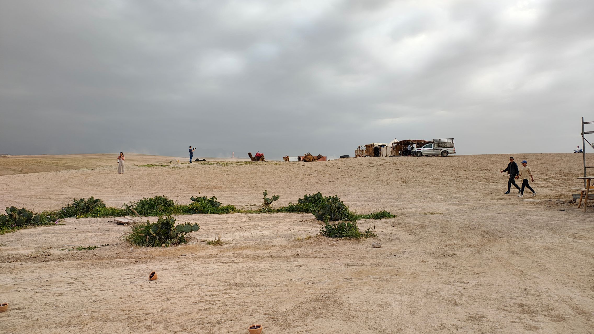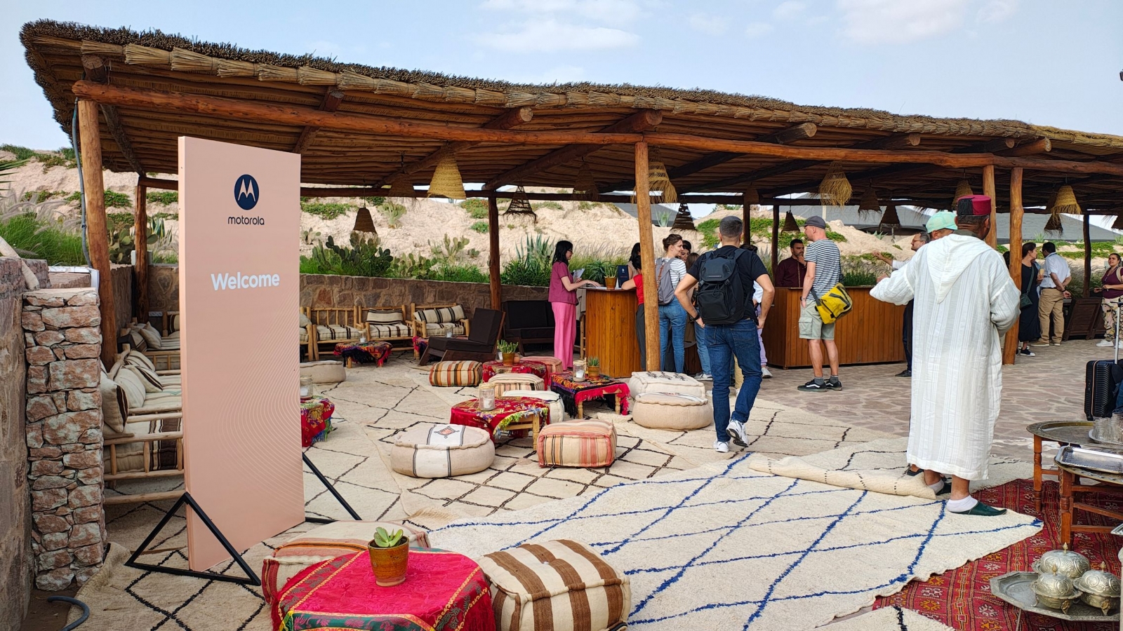 Era aproximativ 15:00 în Maroc (ora 18 România) și am dat nas în nas cu temperaturile toride de deșert. Am așteptat alți colegi de breaslă din alte țări, iar apoi ne-am îndreptat către zecile de Jeep-uri marcate cu logo-ul Motorola care aveau să ne ducă în deșert, urmând a petrece noaptea într-o tabără de beduiuni. Un drum de aproximativ o oră pe străzi nisipoase, cu asfalt în zig-zag și mult mult praf, plus cămile. Din start te lovește nivelul de trai și sărăcia de jur împrejur, clădirile de culoarea nisipului și zecile de Dacii din jur, fiind de departe cel mai popular brand auto din regiune. Și da, multe scutere și motociclete.