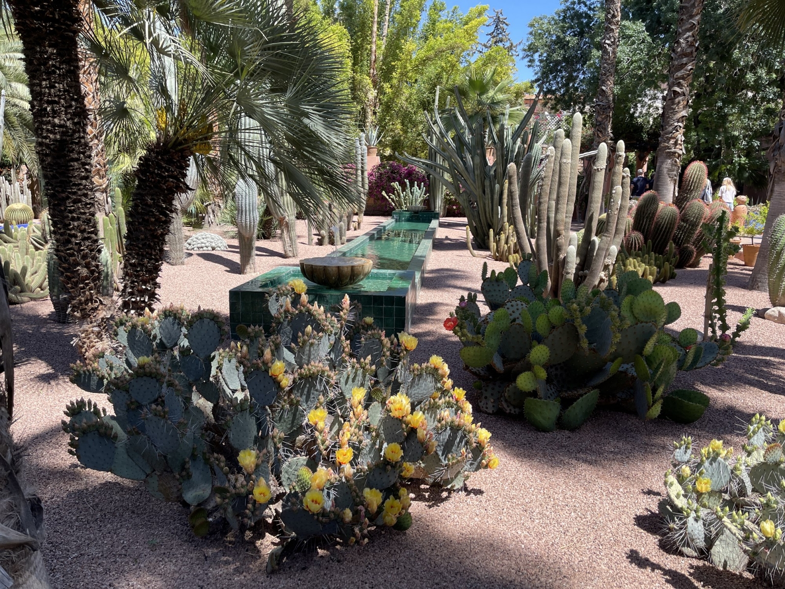 Am avut timp pentru a vizita magazinele de suveniruri din jur, iar apoi ne-am îndreptat către coada ce ne permitea intrarea în grădină și cu toate că aveam ora 12:30 menționată pe bilet, intrarea s-a făcut pe la 12:50. Grădina este impresionantă, o oază de liniște și vegetație care te încarcă, cu energie, mai ales după drumul pe jos în aglomerația urbană. Totul este gândit perfect la capitolul organizare și vă invit să căutați mai multe despre această locație, un must-see dacă ajungi în Marrakesh. Costul de intrare a fost aproximativ 20 euro și am avut acces și la un mic muzeu.
