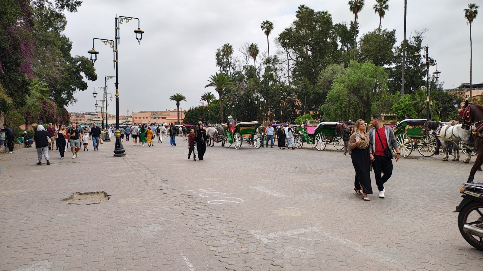 De această dată se anunța o zi călduroasă astfel că mi-am luat haine de vară iar înainte de a pleca mi-am lăsat ghiozdanul la recepție, făcând și checkout-ul, urmând a mă întoarce pentru transferul către aeroport. Alături de colega Roxana Voloseniuc din echipa de jurnaliști adusă de Moto în Maroc, am decis să explorăm grădinile Majorelle, un punct principal de atracție. Am pornit la drum în jur de ora 11, având intrarea programată la 12:30 și un drum de aproximativ 40 de minute de parcurs pe jos până la locație.