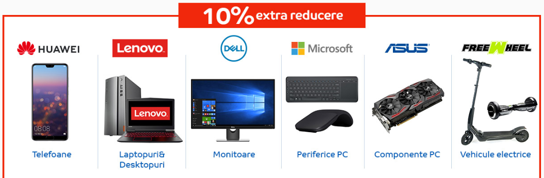 Mai sus puteți găsi și o listă a produselor care ne-au atras atenția prin prisma prețurilor (având aplicat voucher-ul), fiind vorba despre câteva smartphone-uri, un televizor și câteva dispozitive din zona IT&C. Puteți găsi pe lista de categorii pentru care se aplică voucher-ul mai sus menționat și electrocasnice, periferice PC, obiecte de îngrijire personală, produse din zona auto și multe altele.