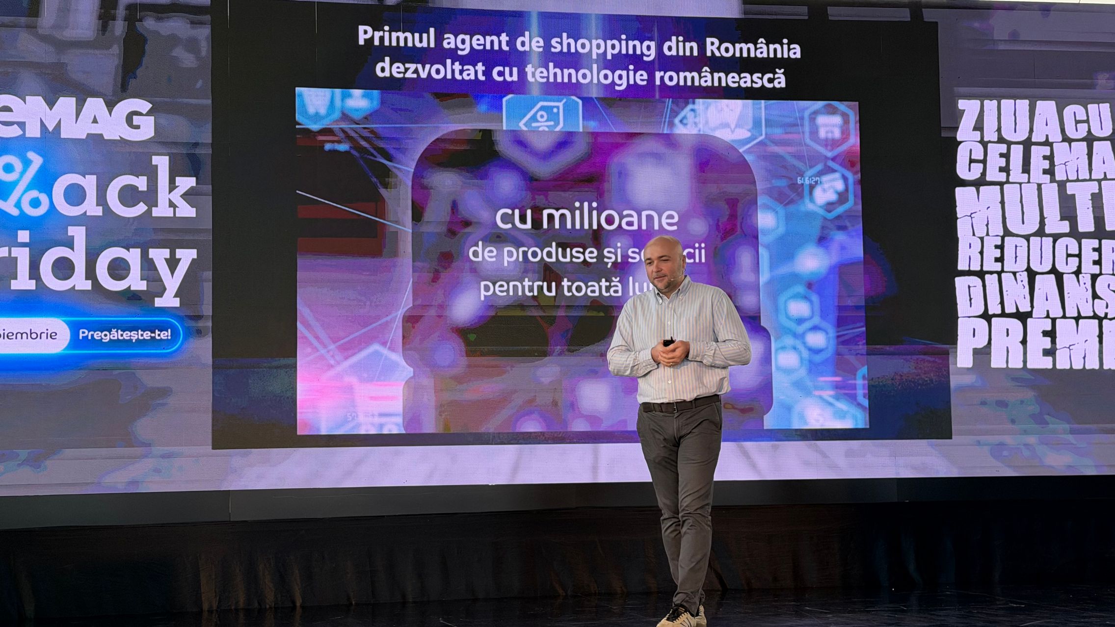 Evenimentul eMAG Black Friday 2025 a avut loc pe 3 noiembrie 2025 şi ne-a adus informaţii despre campania de reduceri din acest an. Prezentarea a început însă cu "primul agent de shopping din România, dezvoltat cu tehnologie românească". Practic, un soi de GPT pentru cumpărături.