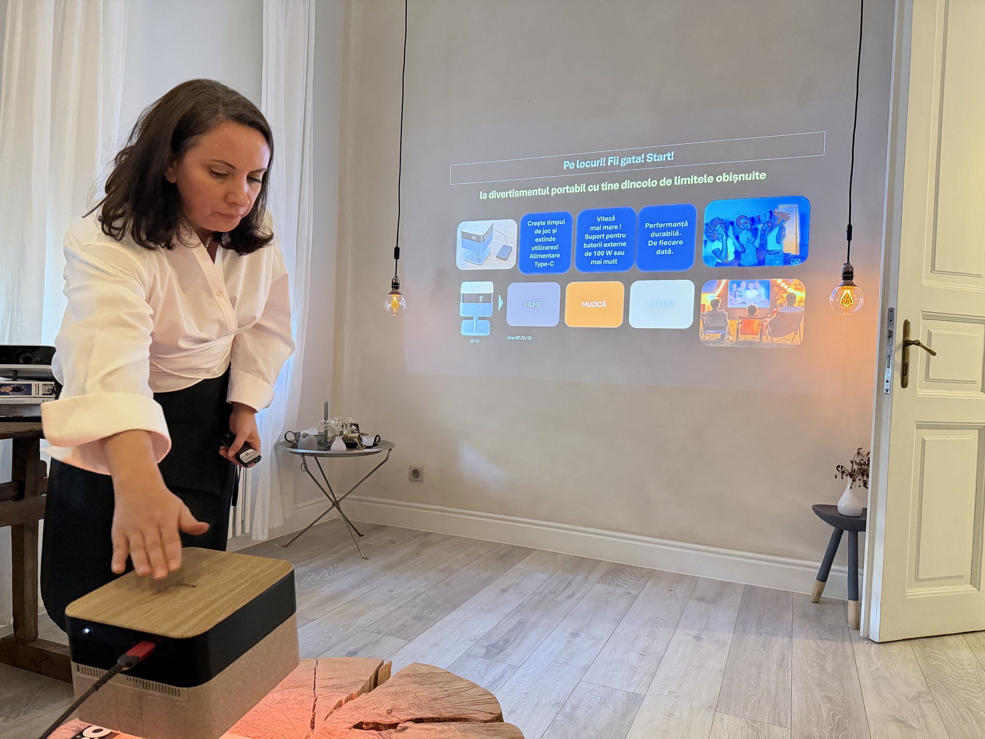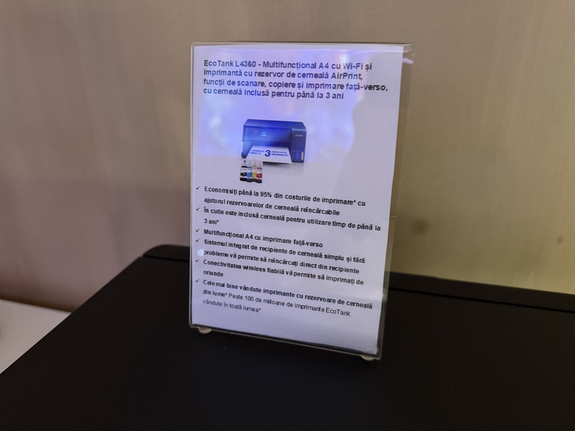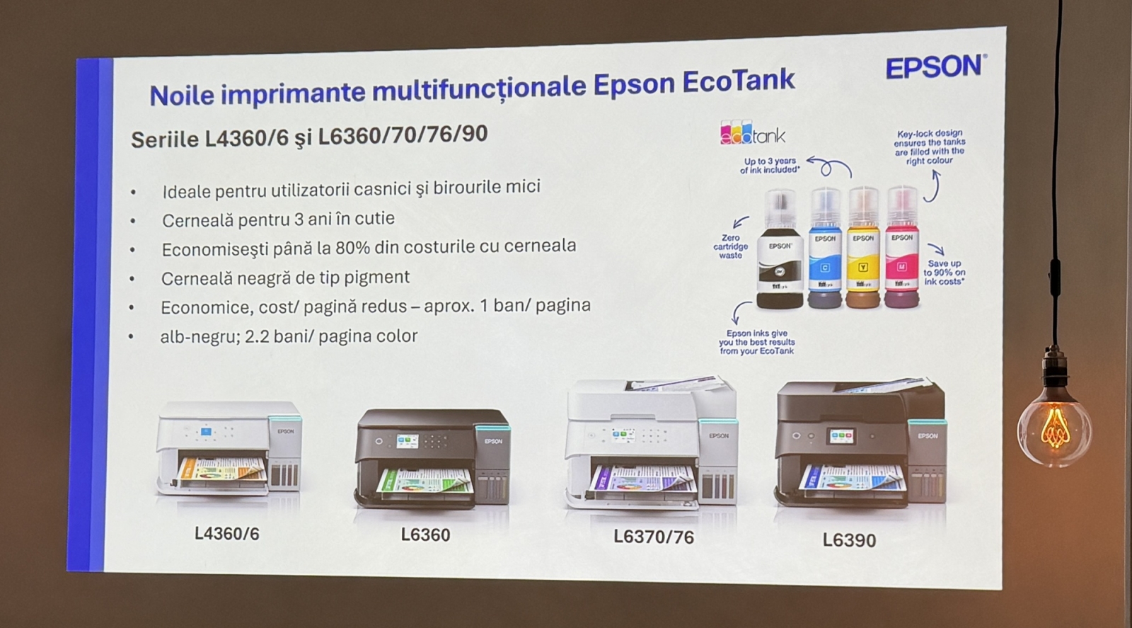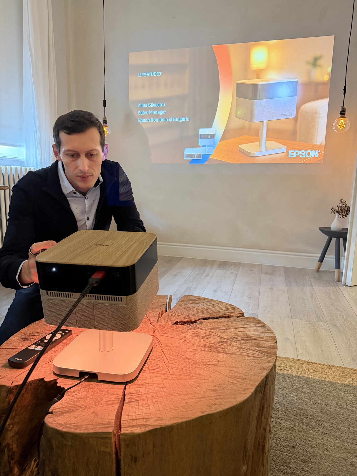 Ne-a vorbit Alina Silvestru, Sales Manager Epson România şi Bulgaria. Cu această ocazie am aflat că Epson a avut în 2024 52% în piaţa globală de videoproiectoare, iar în România a ocupat locul întâi în această zonă. E locul întâi şi în segmentele Home Cinema şi Educaţie, dar şi Corporate. Prima jumătate din 2025 le-a adus o creştere şi o cotă de piaţă de 49% între videoproiectoarele de la noi.