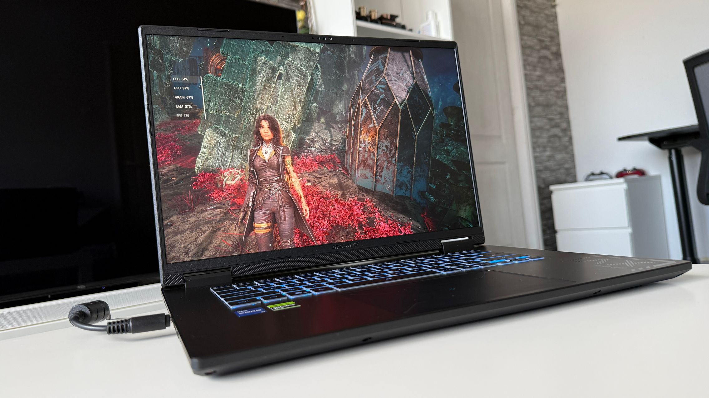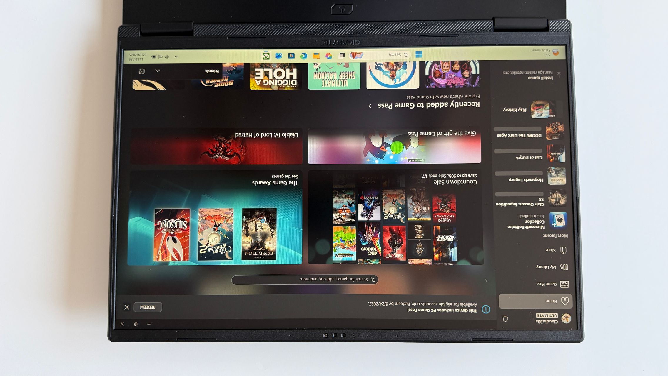 Am decis ca în această recenzie să mă axez pe 2 titluri importante și variate, astfel încât să testez diferite aspecte ale - ce poate livra acest laptop de gaming GIGABYTE. M-am oprit la jocul anului Clair Obscur: Expedition 33 și la Hogwarts Legacy, nu de alta dar de curând le-am testat și pe câteva dispozitive portabile cu Windows, astfel că m-am gândit că ar fi interesant să văd cum se descurcă și un laptop unde răcirea este la alt nivel. Zis și făcut, m-am logat în Xbox Game Pass (apropo, laptop-ul vine cu un bonus PC Game Pass) și am descărcat folosind conexiunea WiFi 6e și abonamentul Digi 1 Gbps cele 3 jocuri de mai sus.