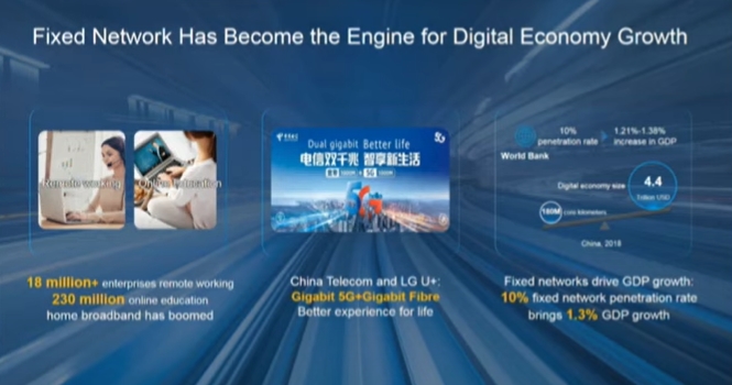 În primul trimestru din an pe piața din China existau 80 milioane de întreprinderi cu angajați ce lucrau de acasă, iar la data de 3 februarie 60% din angajații Huawei lucrau de acasă, codând sau compilând software. Apar și noi trenduri precum consultul medical online (12 milioane de consultații medicale zilnice) - astfel că rețeaua de acasă este foarte importantă.