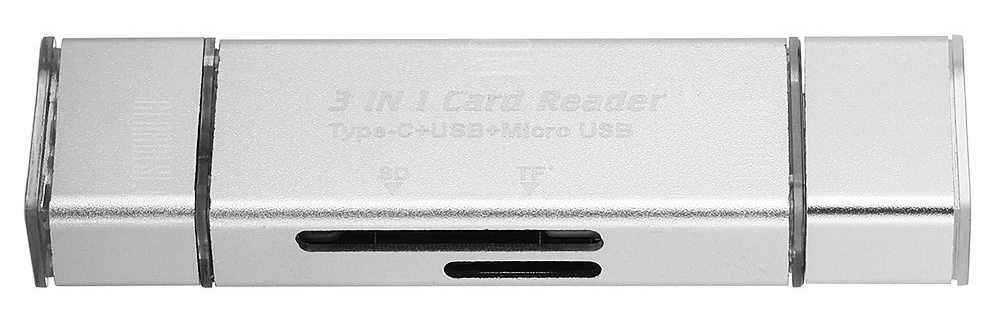 Uneori ne confruntăm și cu situația de a copia date de un un card SD și dacă computer-ul nostru nu oferă funcționalitatea de cititor de carduri, suntem nevoiți să apelăm la un gadget dedicat. Un asemenea produs este cel din imaginea de mai sus care vine sub forma unui stick USB la prețul de numai 5.59 dolari. Se oferă porturi microUSB v2.0 și Type-C pentru conectarea la smartphone și tabletă, dar și un full USB 3.0. De asemenea, trebuie precizat că sunt suportate carduri de până la 32 GB.