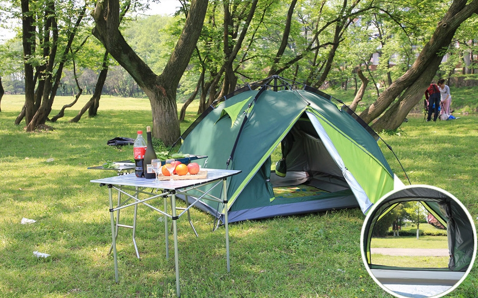 Nu în ultimul rând ne-am gândit și la un cort, lucru fără de care un camping nu se poate numi camping. Modelul Flytop pe care îl puteți vedea în imaginea de mai sus poate găzdui 3-4 persoane și este realizat dintr-un material poliester rezistent la apă. Vine în numeroase variante de culoare, iar prețul său este de 91.76 dolari - sumă chiar rezonabilă comparată cu alte versiuni similare pe care le găsim la noi.
