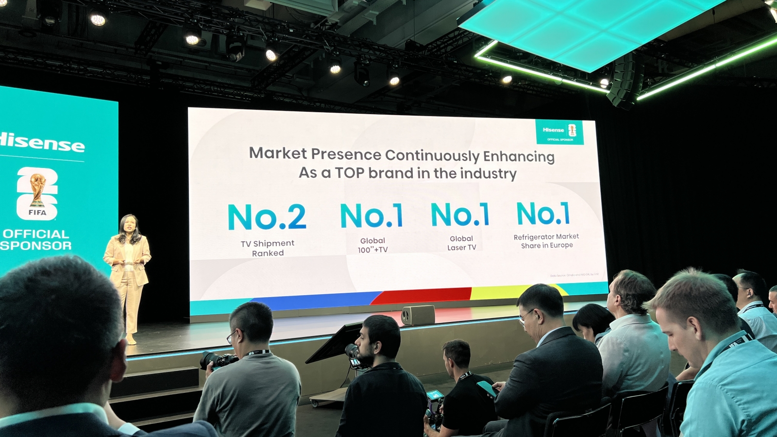 Momentul de început a fost rezervat unui anunț important, acela că Hisense este sponsor oficial al World Cup 2026, un eveniment sportiv grandios organizat în 3 țări anul viitor, cu 48 de echipe și 104 meciuri programate. Am aflat astfel că Hisense își bifează cu ușurință titulatura de brand de top în industria TV, fiind pe locul 2 la livrări de TV, pe locul 1 global la televizoare de peste 100 de inch, cât și pe locul 1 la nivel global în zona Laser TV.