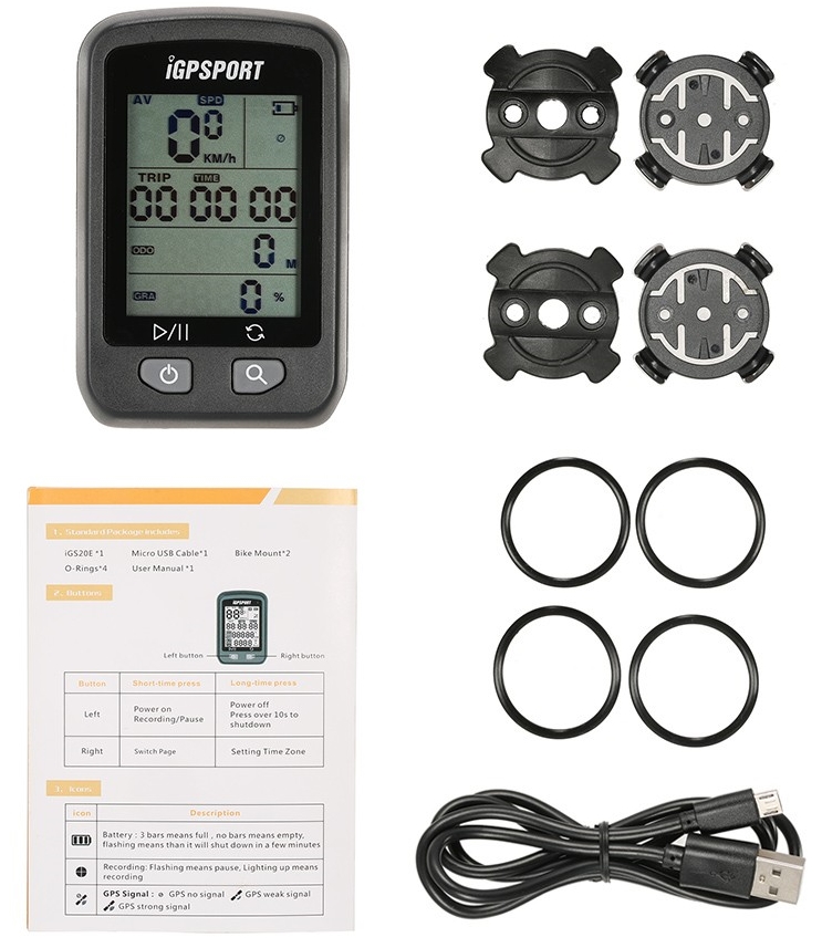 Se măsoară și viteza maximă, temperatura și numărul de calorii.De asemenea, pe ecranul monocrom cu iluminare ne va fi afișată și ora exactă, data și kilometrajul. iGPSPORT iGS20E dispune de GPS, de o baterie de 500 mAh ce va fi încărcată prin intermediul portului microUSB v2.0 și de senzori barometru, respectiv altimetru.