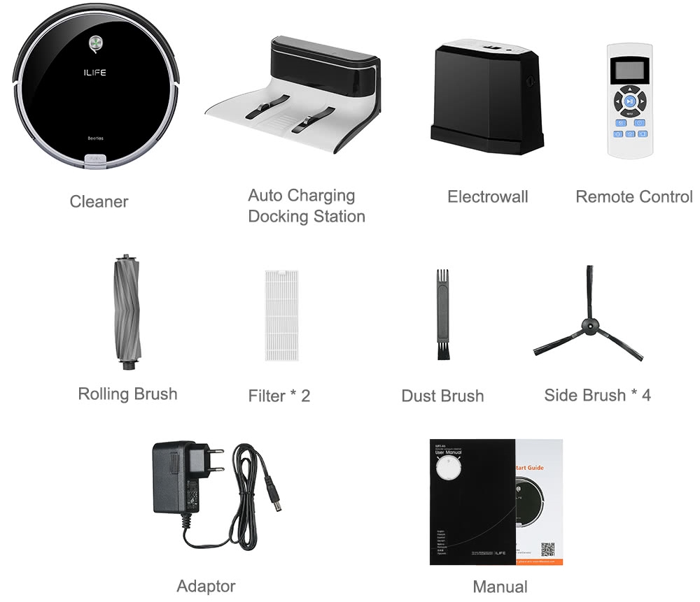 De asemenea, aspiratorul ILIFE A6 are integrate funcții anti-ciocnire cu obiectele de mobilier de prin casă și funcția de curățare automată. La pachet vom găsi o gramăda de accesorii, de la dock-ul home de încărcare, la telecomandă adaptor, perie de curățare, electrowall (produs pus în pragul ușii pentru a seta camera în care se va realiza curățenia) și până la extra perii de curățare pentru părțile laterale.