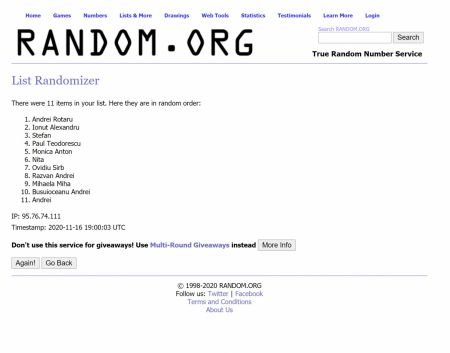 UPDATE 14-11-2020: Iată lista scurtă cu posibilii câștigători! Facem extra verificări în cazul lor, să nu cumva să avem trișori printre ei. Foarte mulți dintre cei care au comentat, au făcut postări multimple, au schimbat ora, sau au postat după ora la care eMAG a dat start reducerilor. Contestațiile le așteptăm pe office@mobilissimo.ro.