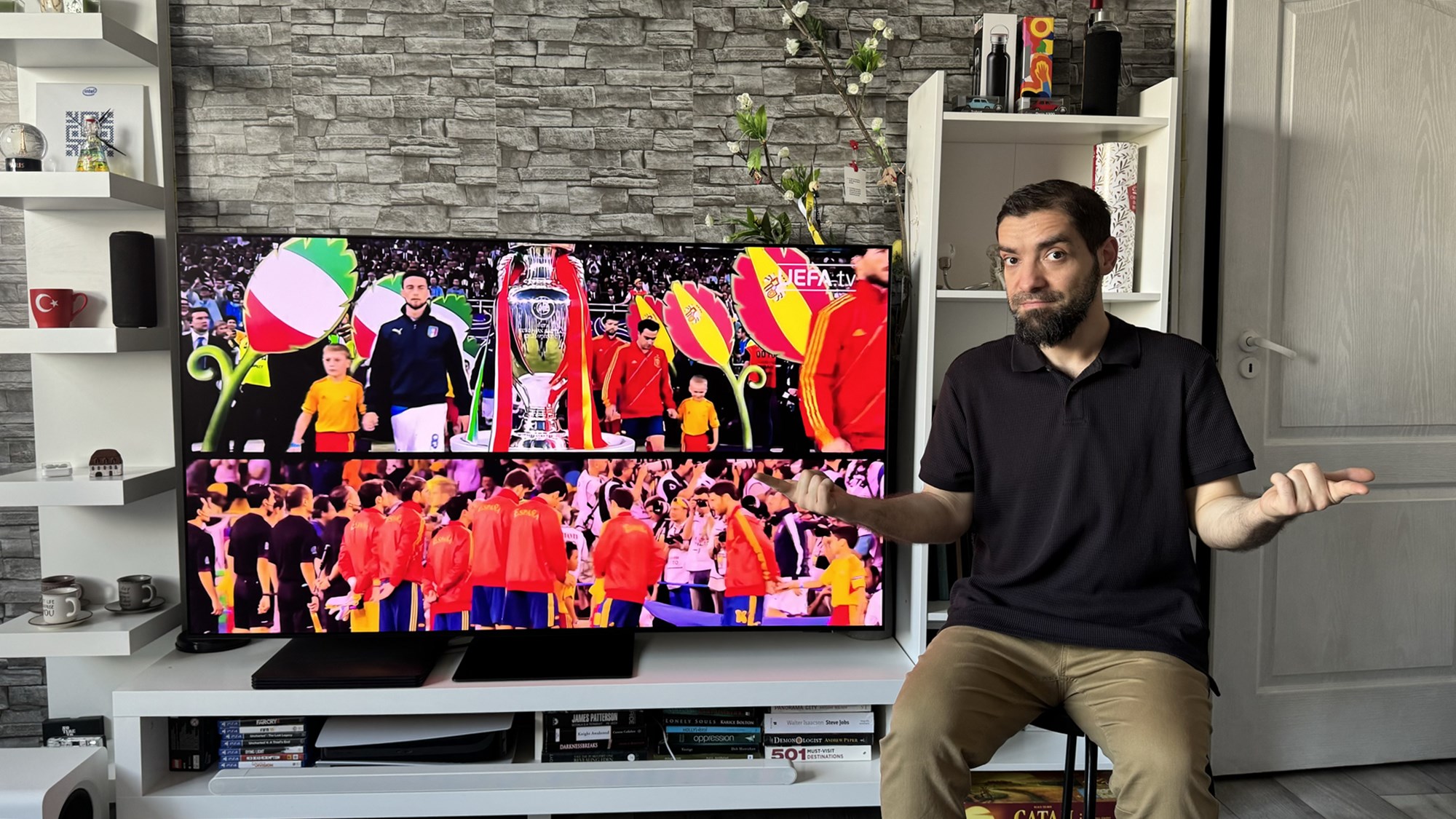 Fast Forward în 2024, ne-am calificat după aşa mult travaliu încât a ieşit şi un film despre asta. Şi norocul face să am la îndemână un TV OLED uriaş, pe care să mă pregătesc de vizionare a meciurilor naţionalei. Şi ca să fie treaba-treabă, are şi un AI care duce vizionarea la alt nivel.