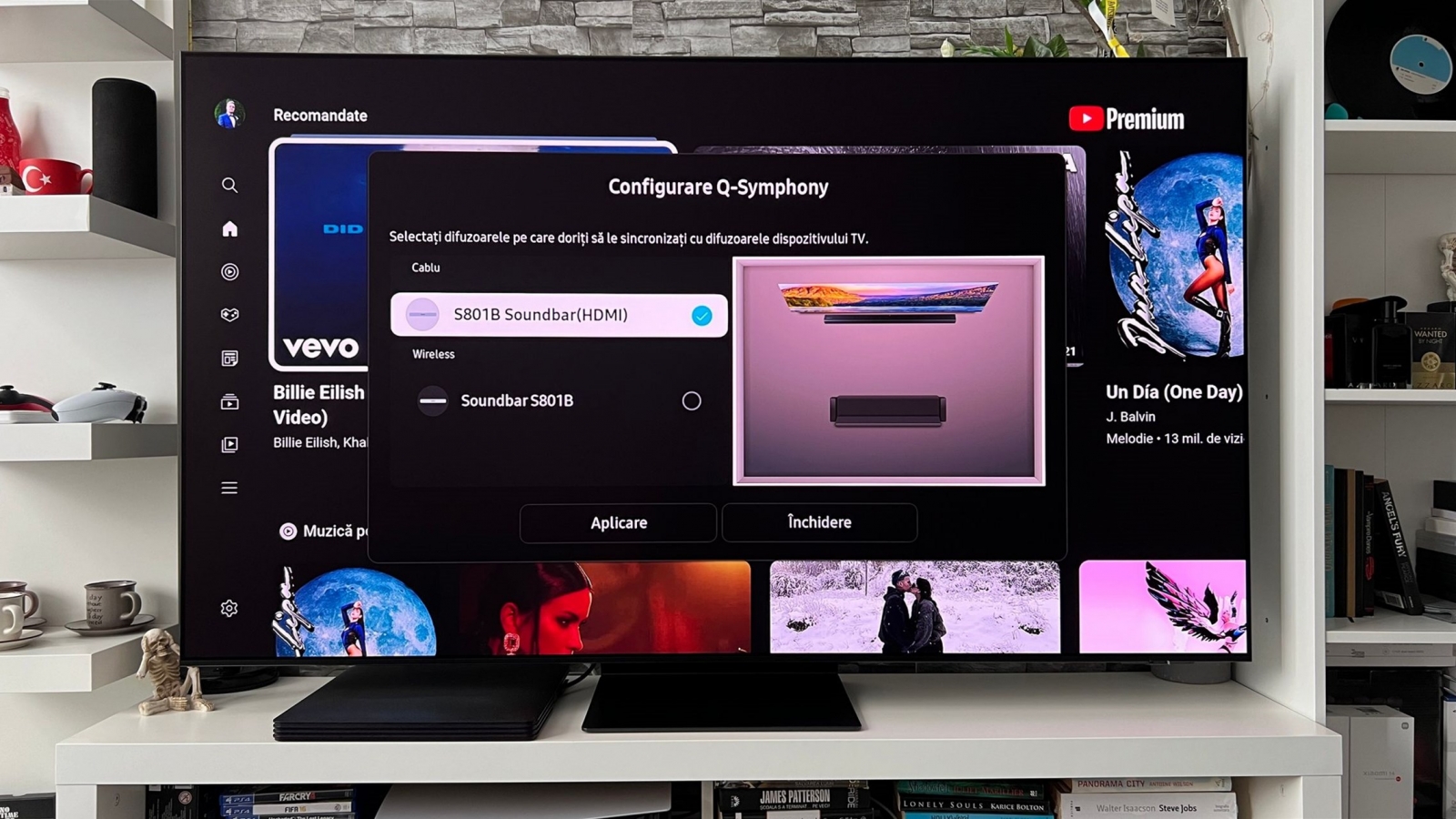 Există şi calibrare în funcţie de mărimea şi forma camerei tale, pentru ca sunetul să fie livrat spaţial şi corect calibrat. Avem şi Object Tracking Sound+, care analizează fiecare scenă şi oferă sunetul ideal pentru fiecare. Asta mi se pare super important pentru trecerile acelea enervante de obicei de la tăcerea unui moment tensionat de decizie a unui penalty la VAR sau judecarea unui ofsaid la o reclamă care urla "REDUCERI UNICEEE". TV-ul Samsung a rezolvat problema asta prin calibrarea sa adecvată a sunetului după fiecare scenă.