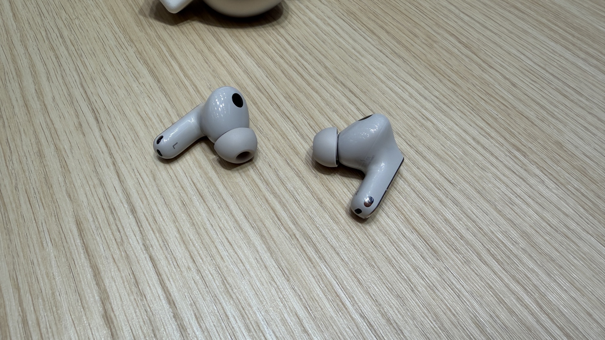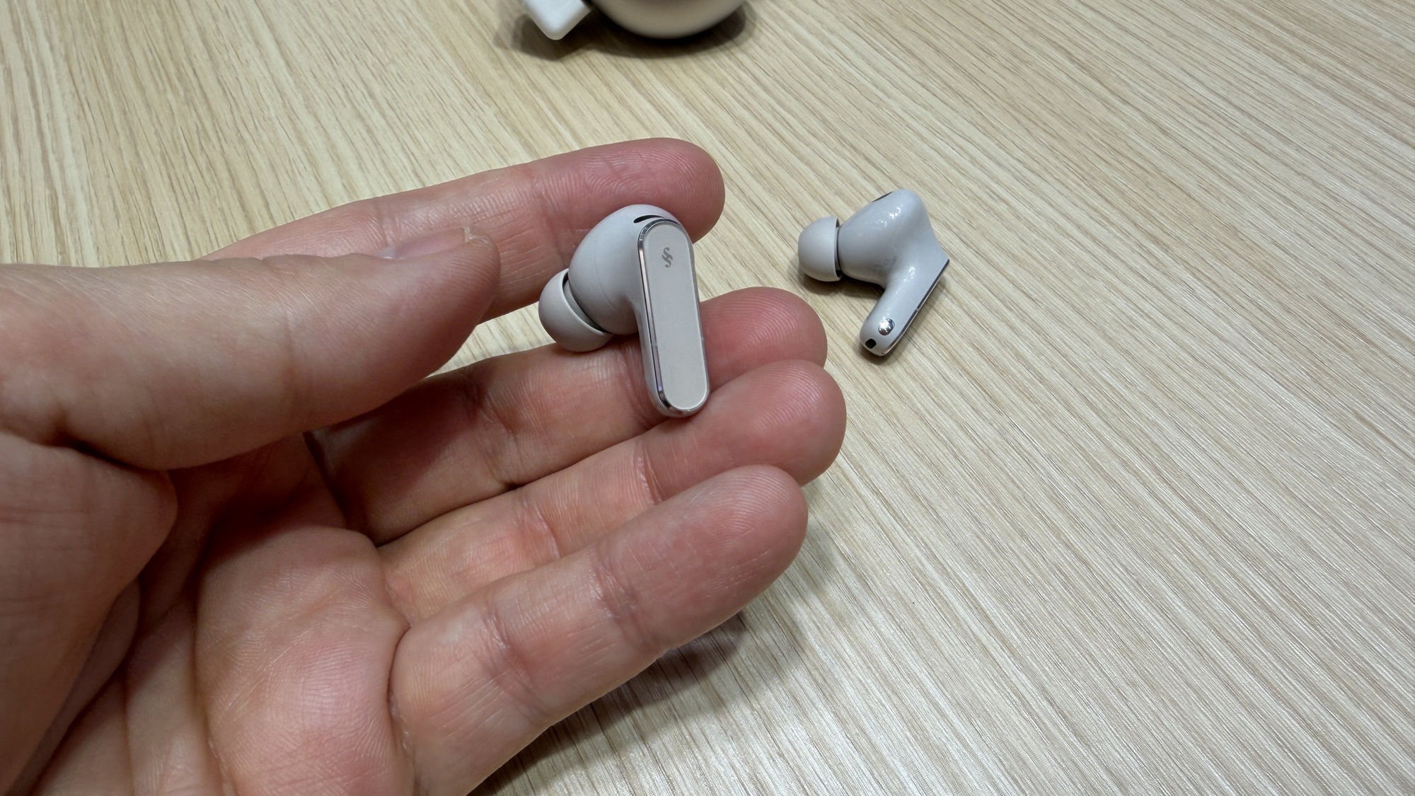 Primul lucru remarcat este designul ușor rafinat. Tijele au fost „redesenate” și au acum margini aurite, iar căștile par mai mici și mai ușoare decât modelul anterior. Sunt livrate cu dopuri din silicon, iar căștile în sine au parte de certificare IP57, tocul având parte de IP54. Ar trebui deci să reziste fără probleme la ploaie și la antrenamente sportive.