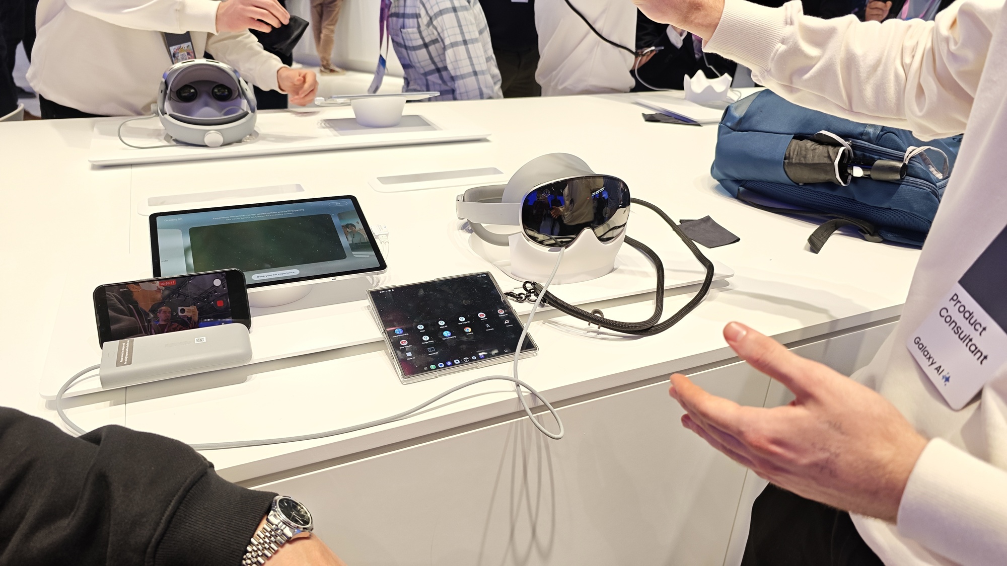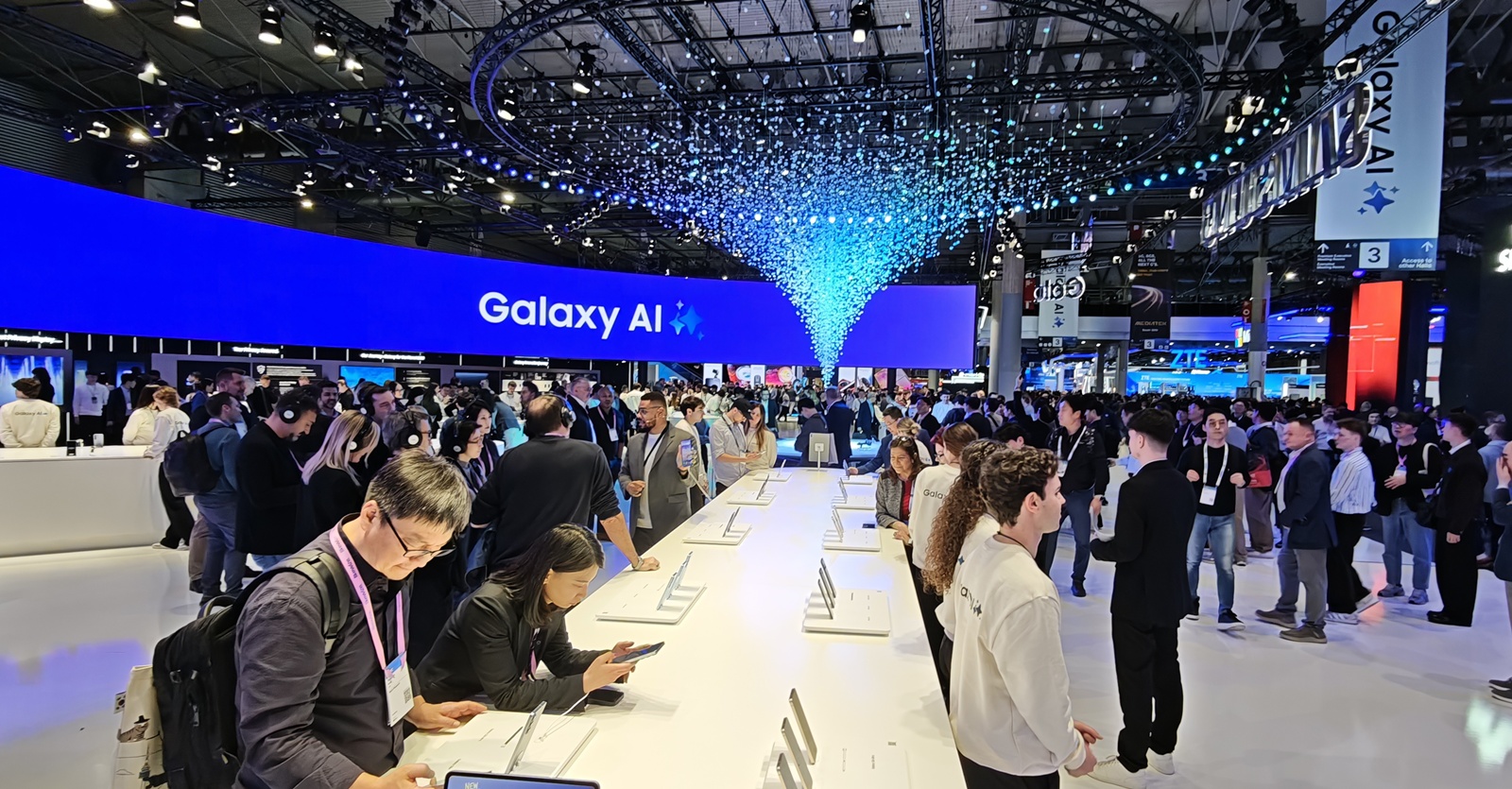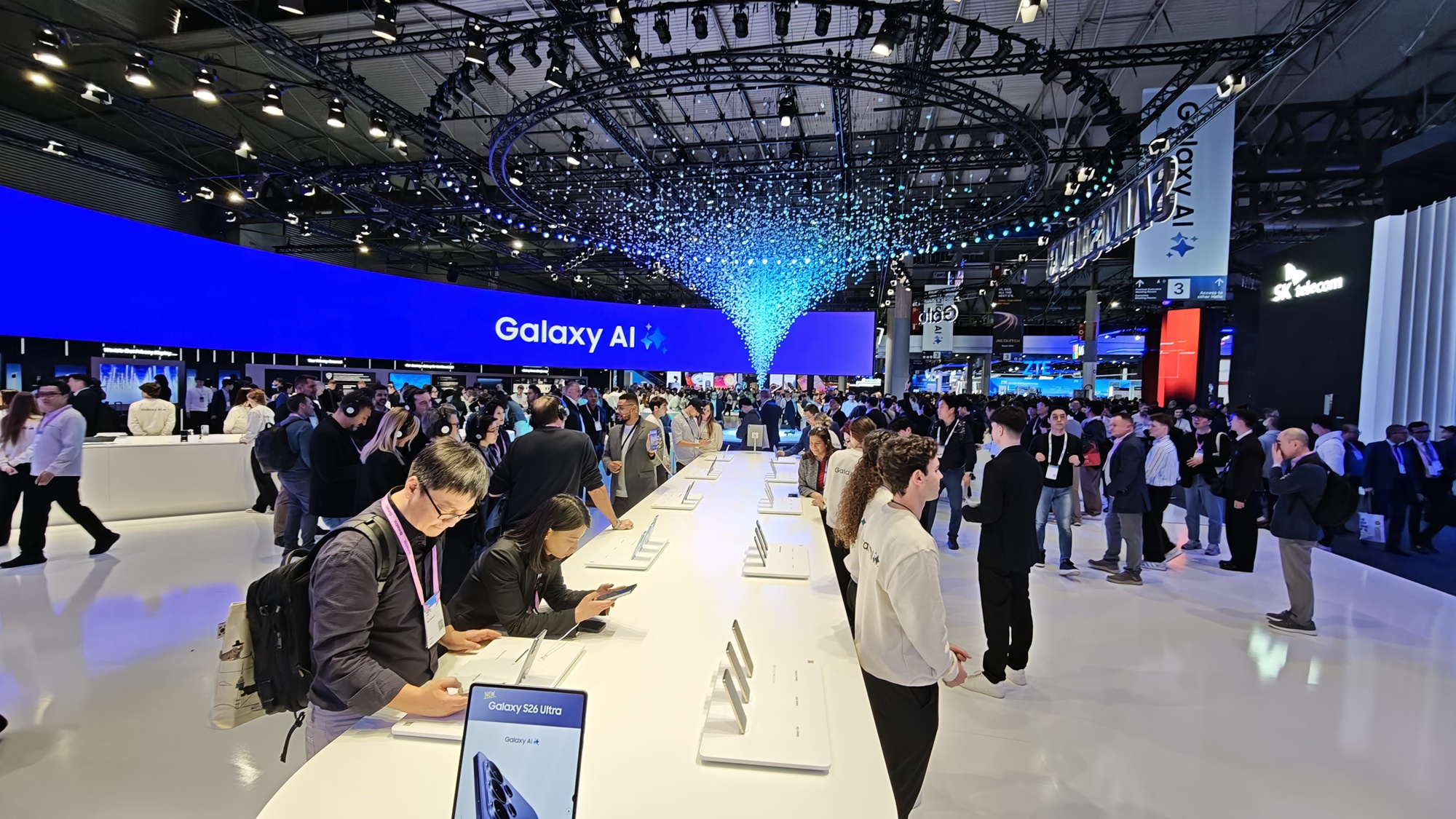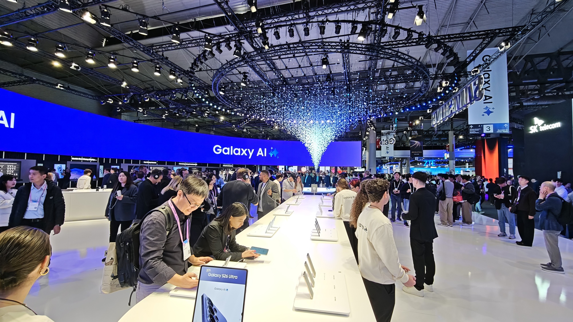 Standul e circular, implică cele mai noi smartphone-uri din seria Galaxy S26, Galaxy Z Fold7, Z Flip7, tablete Galaxy Tab S11 ce pot fi manevrate, dar și Galaxy XR, casca de realitate augmentată a companiei, ce poate fi testată în premieră în Barcelona.