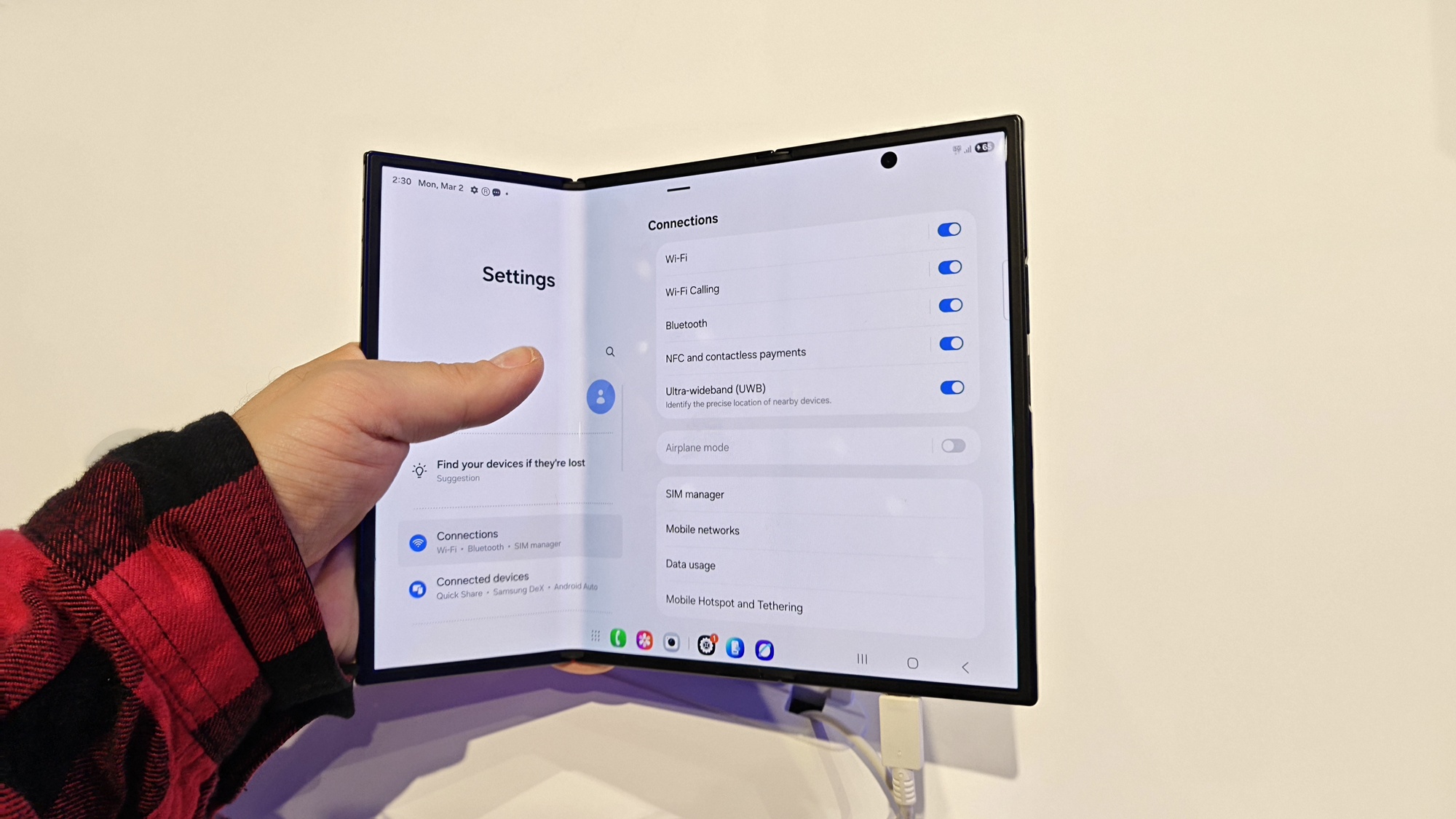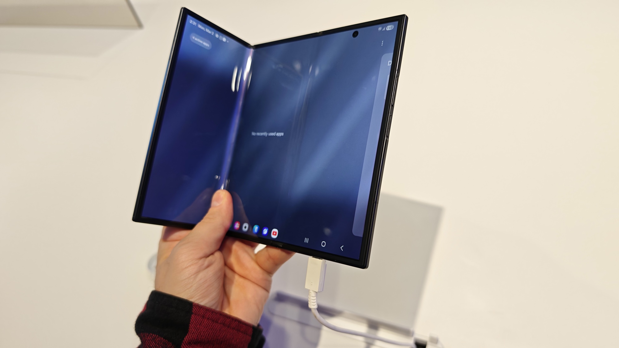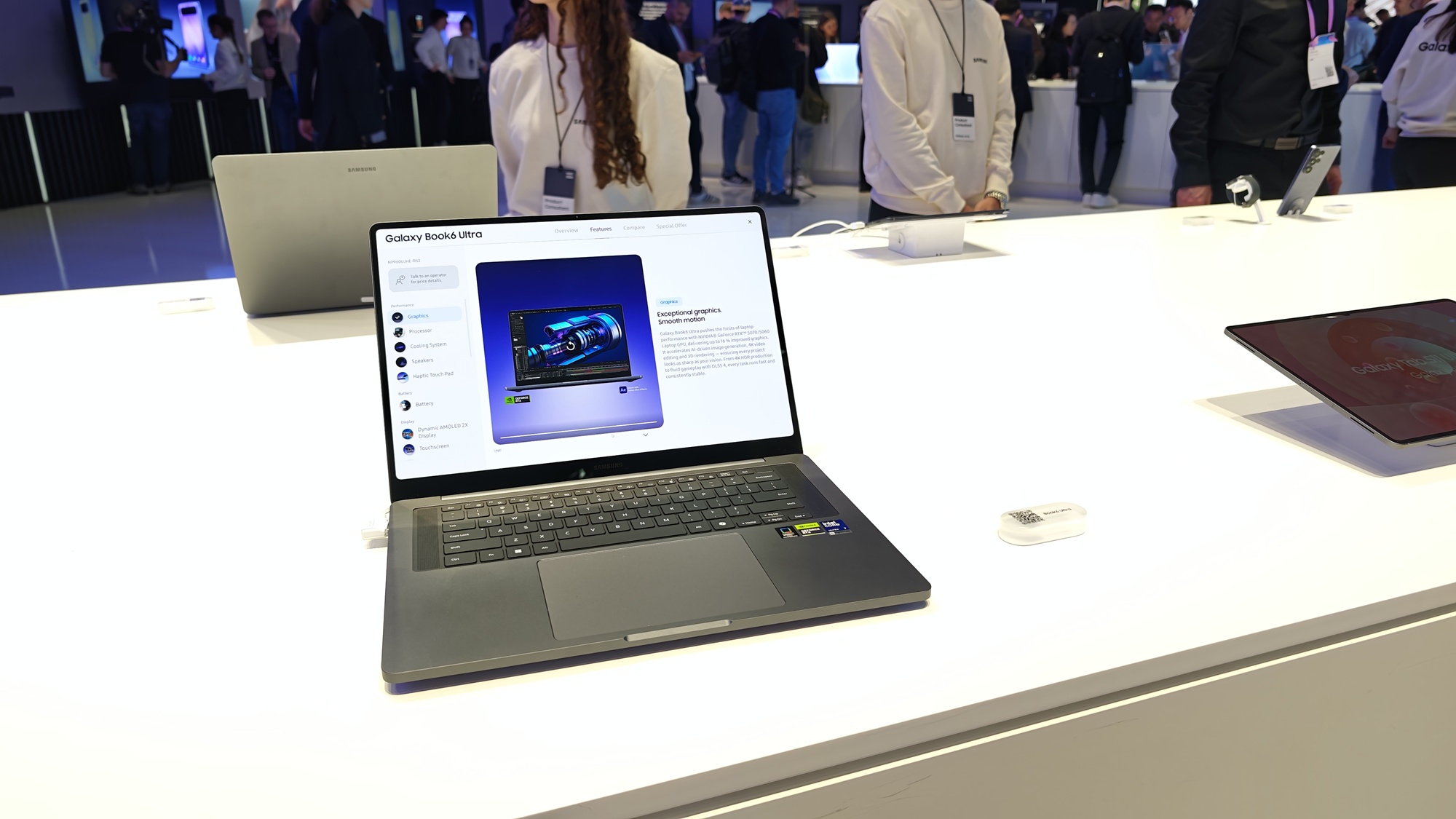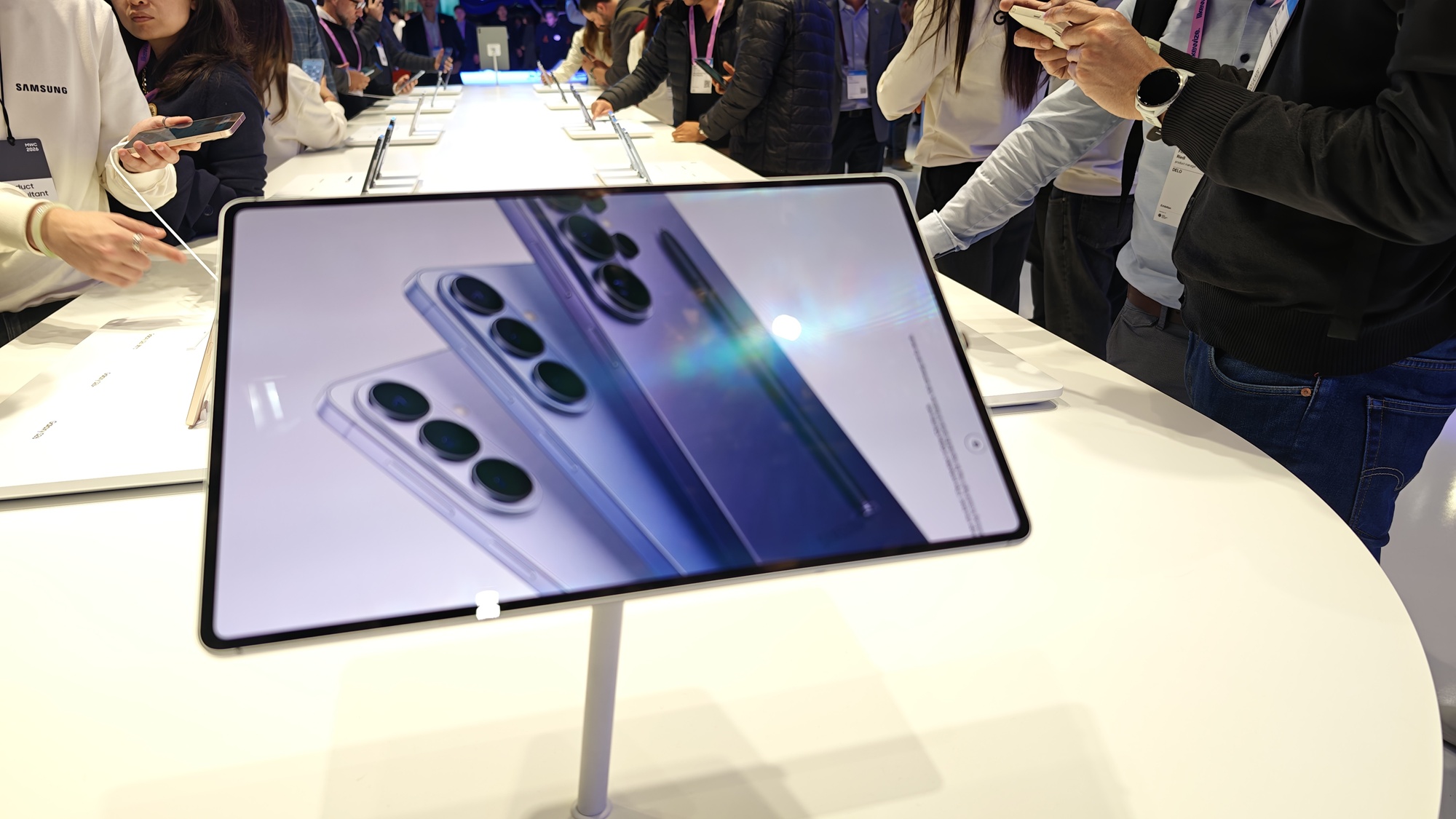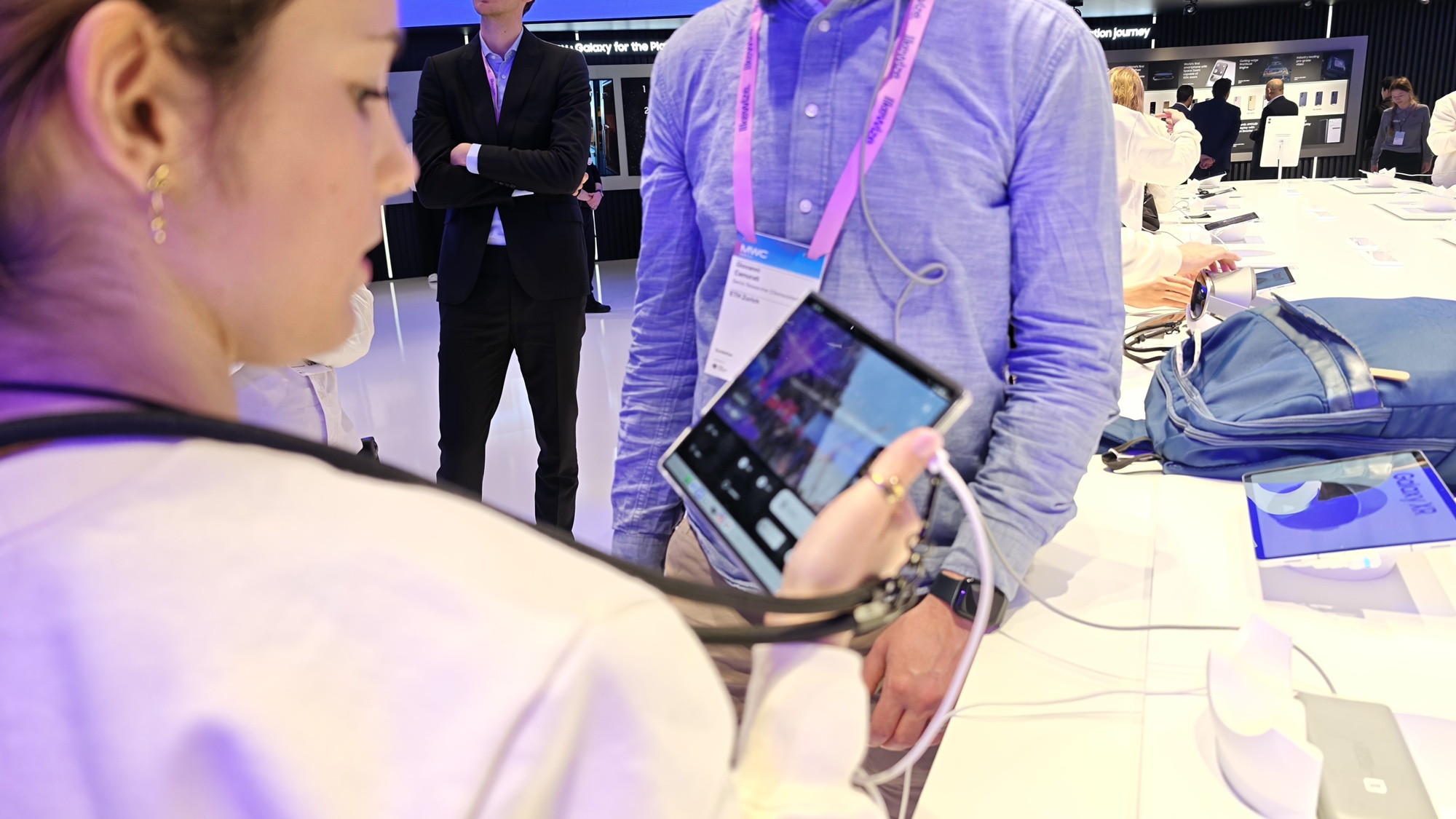 Standul e circular, implică cele mai noi smartphone-uri din seria Galaxy S26, Galaxy Z Fold7, Z Flip7, tablete Galaxy Tab S11 ce pot fi manevrate, dar și Galaxy XR, casca de realitate augmentată a companiei, ce poate fi testată în premieră în Barcelona.