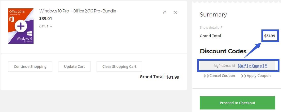 - Windows 10 Pro + Office 2016 Pro - 31.99 dolari