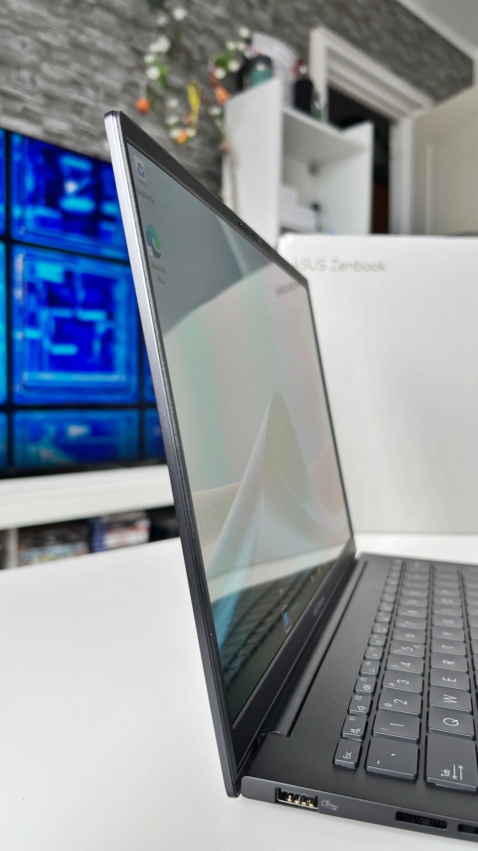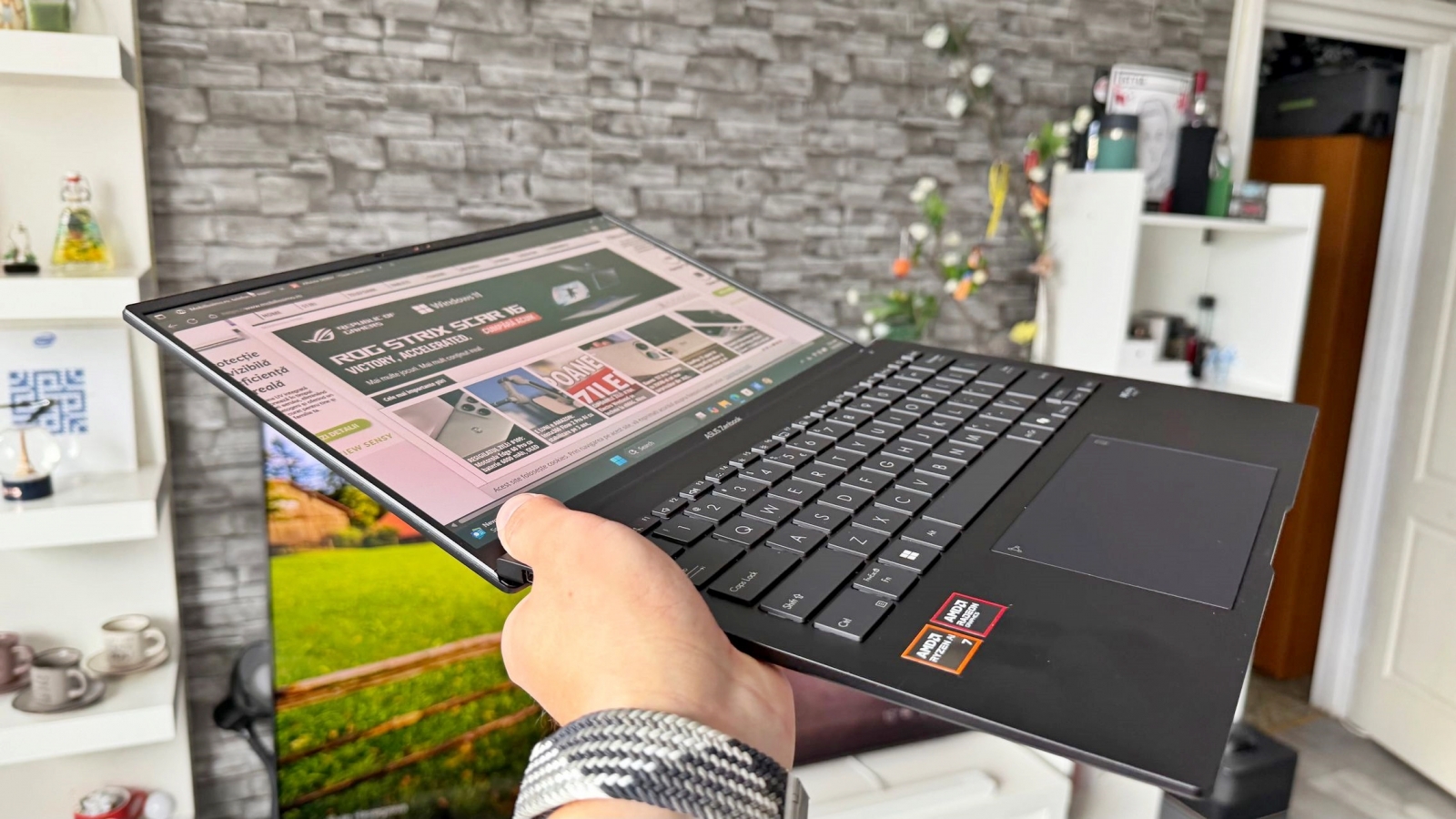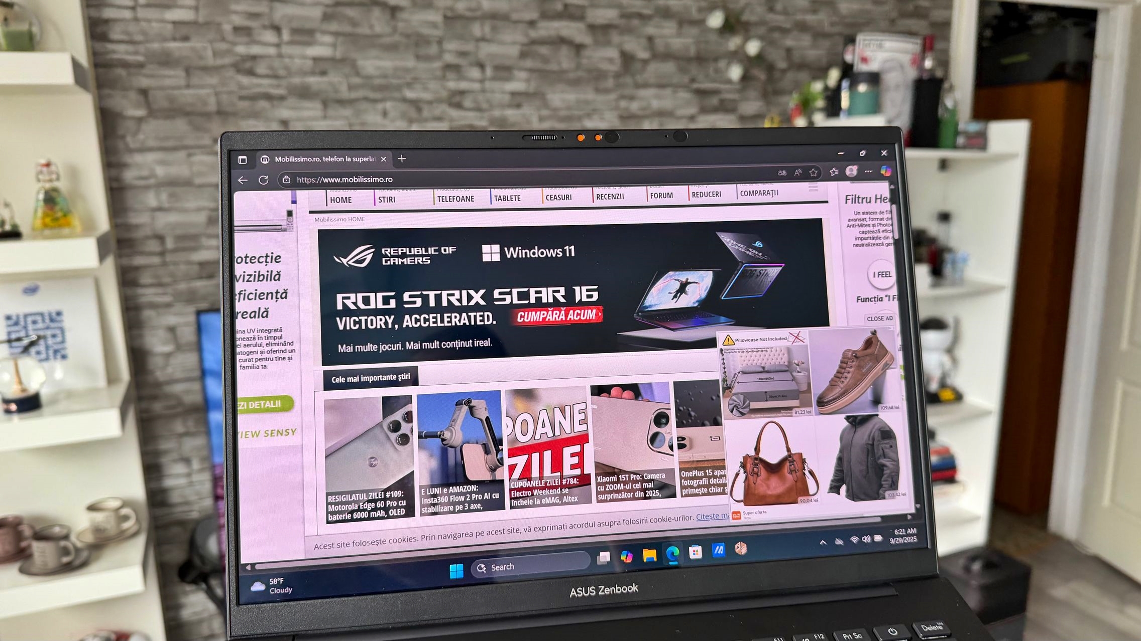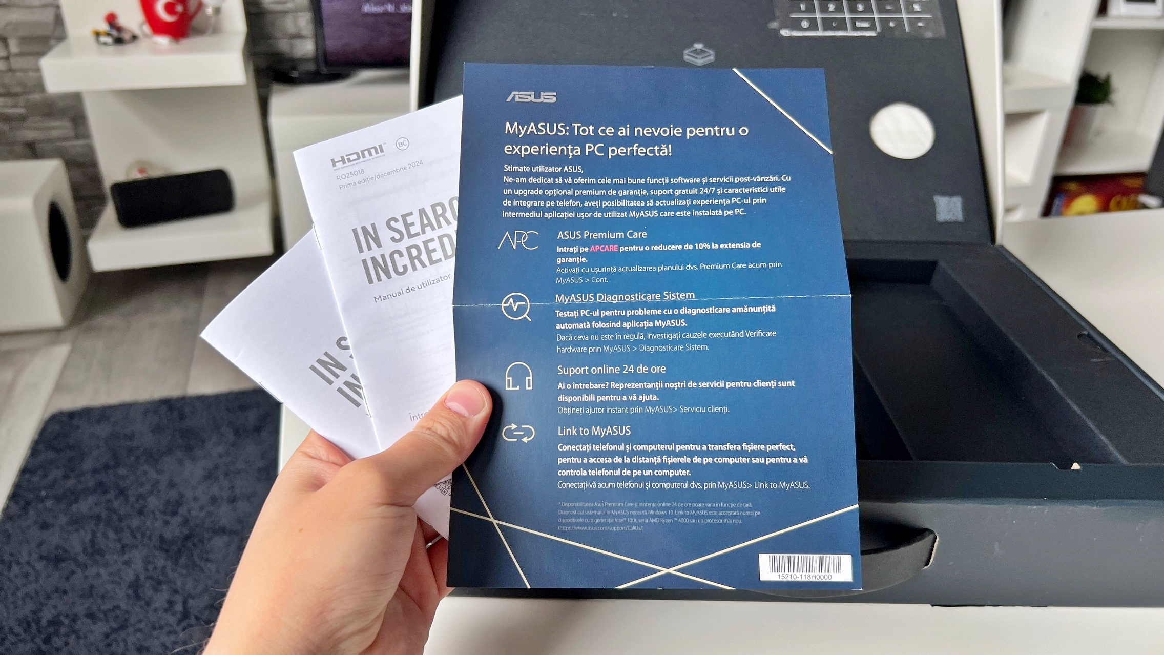 Este o experiență savuroasă, indiferent de conținutul consumat pe acest panou, plus că l-am găsit foarte luminos. ASUS spune că ajunge la până la 600 nits, dar eu nu am exagerat deloc cu slider-ul de luminozitate, setând-o pe nivel jos la interior. E semn că la exterior nu o să am deloc probleme atunci când voi lua cu mine un așa laptop. Apropo, panoul are raport corp-ecran de 87%, sunt muchii înguste și îmi surâde nivelul de imervisitate.